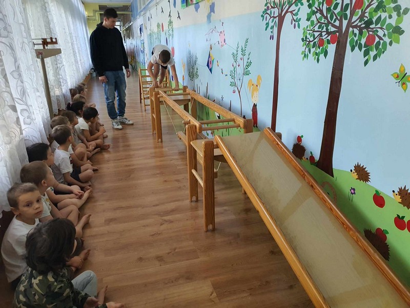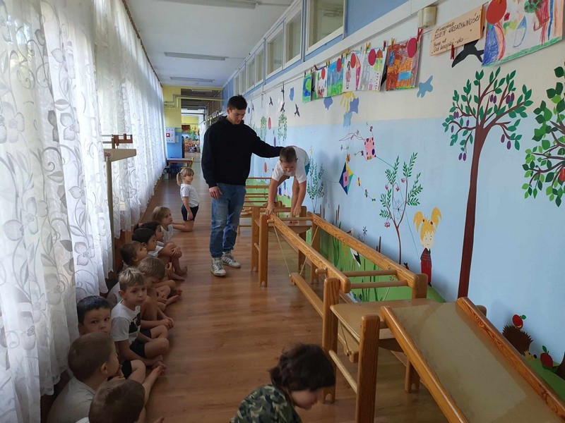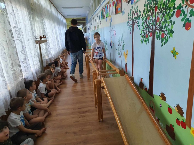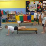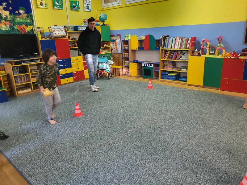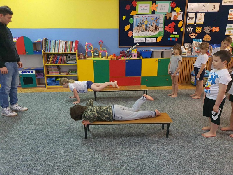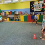 „W zdrowym ciele zdrowy duch”- dzieci z grupy V aktywnie ćwiczyły pod czujnym okiem studenta –Akademii Wychowania Fizycznego Józefa Piłsudskiego w Warszawie – Patryka (naszego wychowanka), rozwijały ogólną sprawność psychoruchową. Dzieci chętnie wykonywały polecenia , współpracowały z innymi dziećmi. Świetnie poradziły sobie z pokonaniem „ Zdrowej ścieżki”.