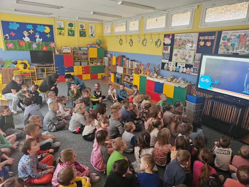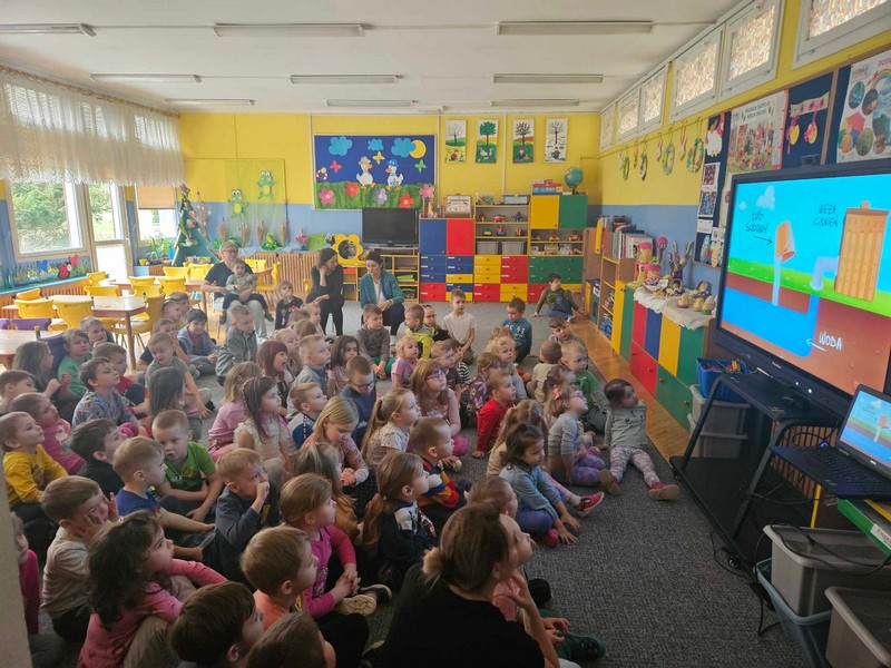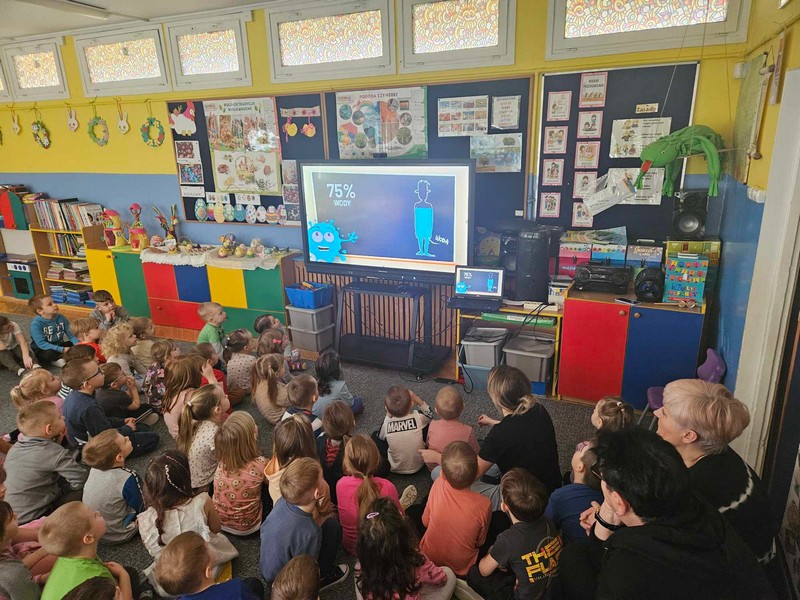 „22 marca Światowy Dzień Wody”- przedszkolaki wspólnie odkrywały tajemnice wody, poznawały znaczenie wody w przyrodzie oraz konieczności jej oszczędzania. Uczestniczyły w prezentacji filmu edukacyjnego pt. „Woda wokół nas”
