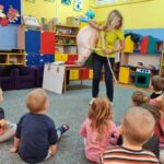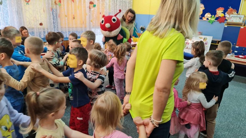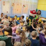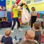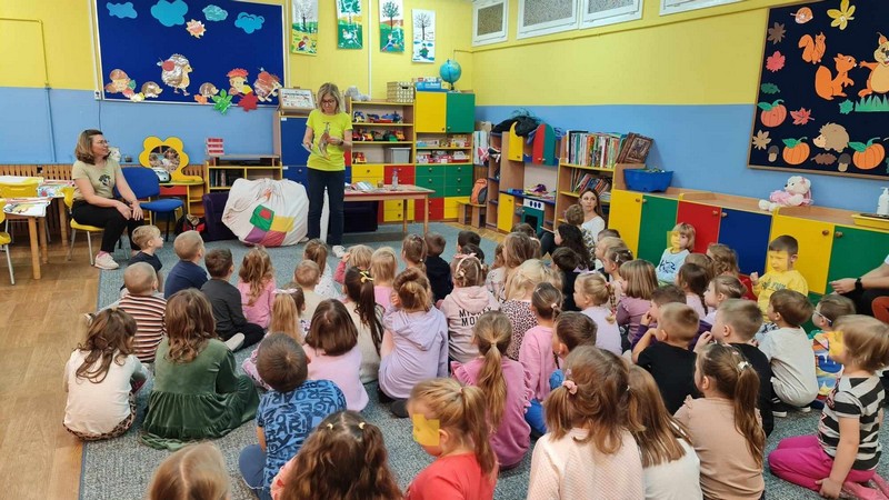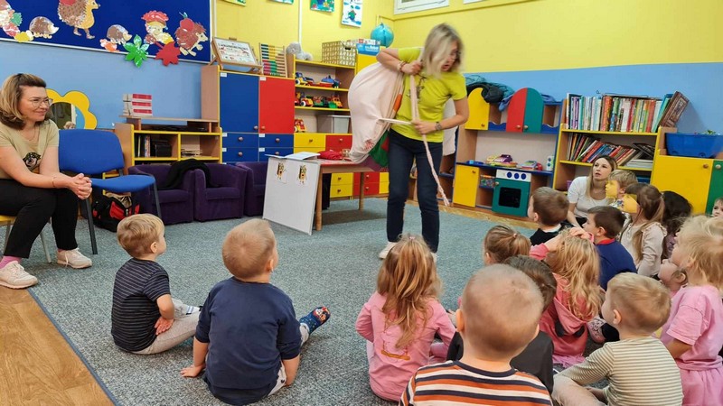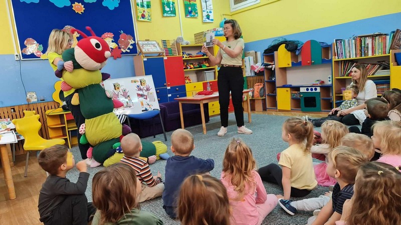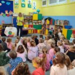 „Stonoga Jadzia”- dzieci uczestniczyły w spotkaniu autorskim z Barbarą Szelągowską . W czasie spotkania wzbogaciły swoje wiadomości nt. drogi książki od autora do czytelnika, świetnie bawiły się razem z panią Barbarą Szelągowską oraz ilustratorką książki pt. „Stonoga Jadzia”.