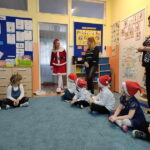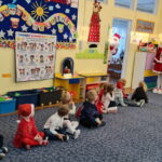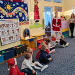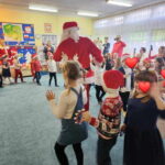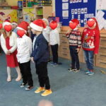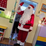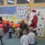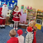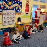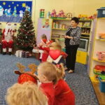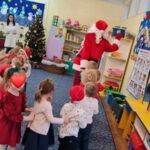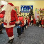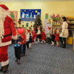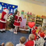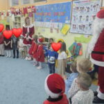 Spotkanie z Mikołajem”- dzieci z poszczególnych grup wiekowych odwiedził niecodzienny gość – pan Mikołaj w asyście pani dyrektor Małgorzaty Bor. Przedszkolaki ze wszystkich grup wiekowych zaprezentowały wiersze i piosenki . Pani dyrektor Małgorzata Bor podziękowała dzieciom za występ, rodzicom za przybycie. Pan Mikołaj wręczył prezenty. Następnie Śnieżynka wspólnie z Mikołajem zaprosiła dzieci do wesołej zabawy. Bardzo dziękujemy rodzicom za pomoc Mikołajowi!!!