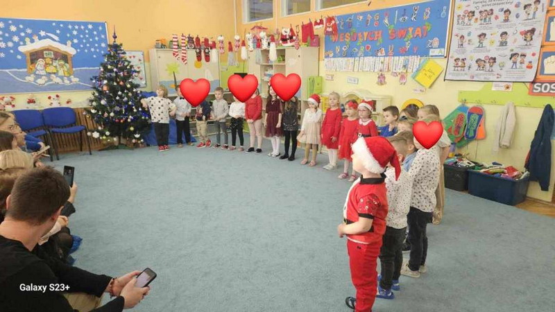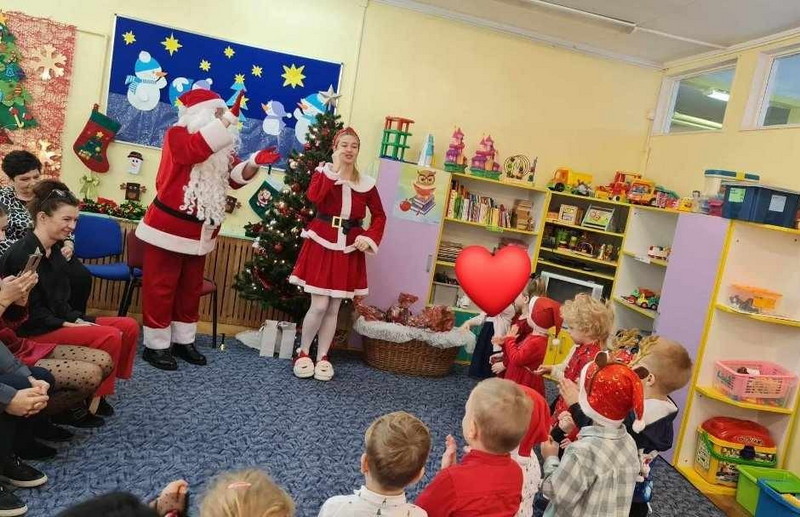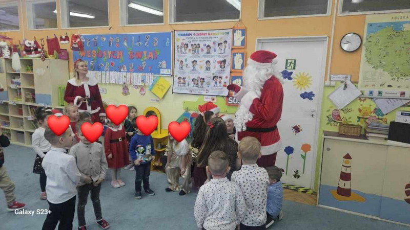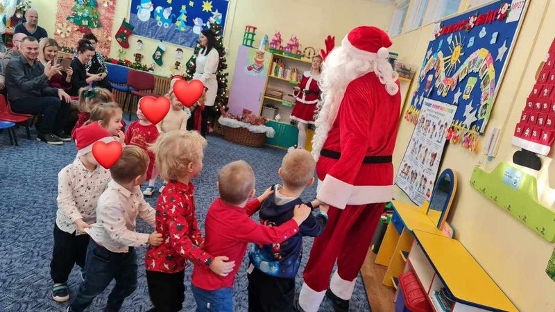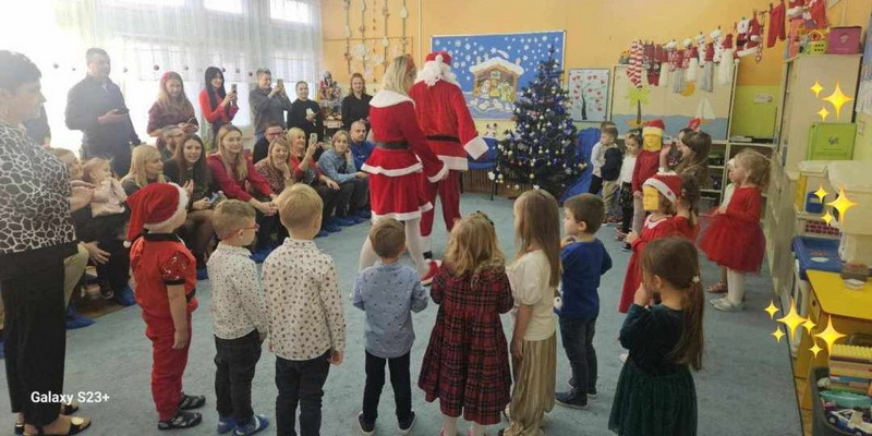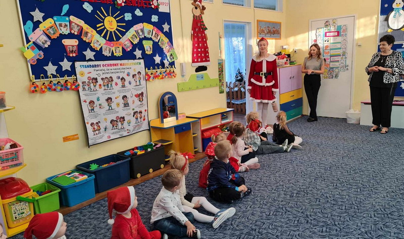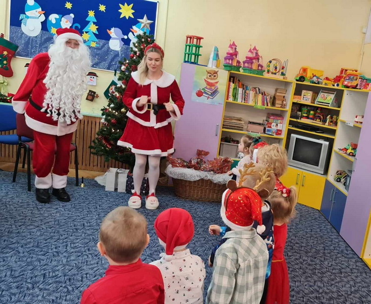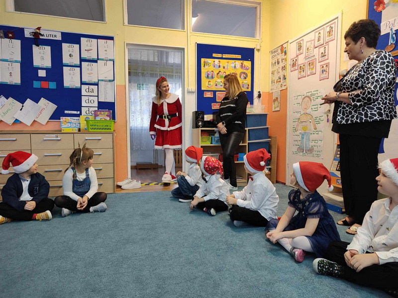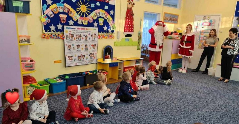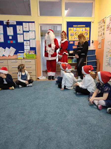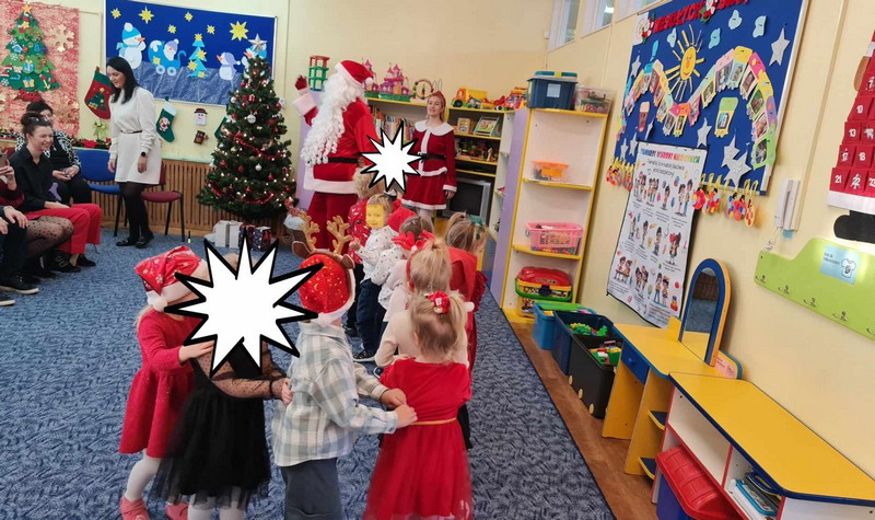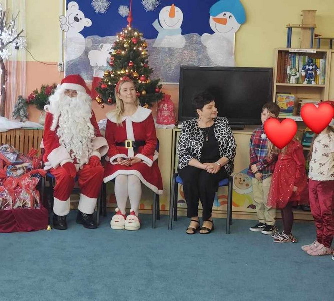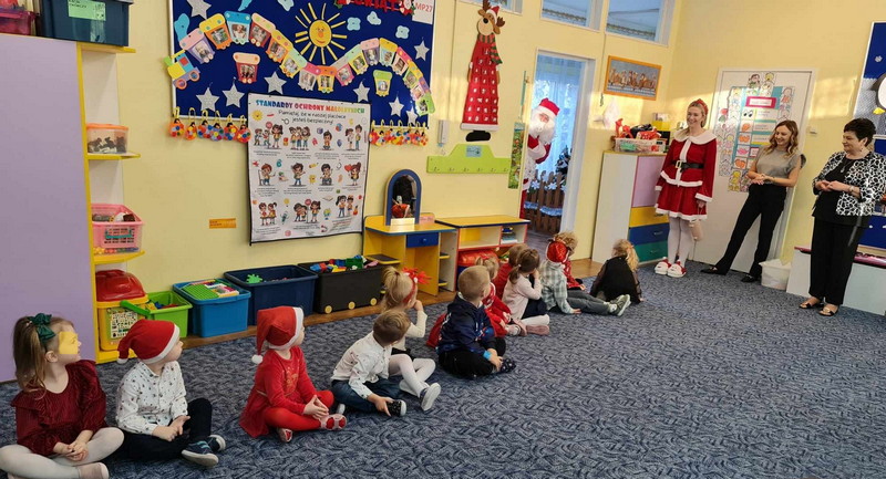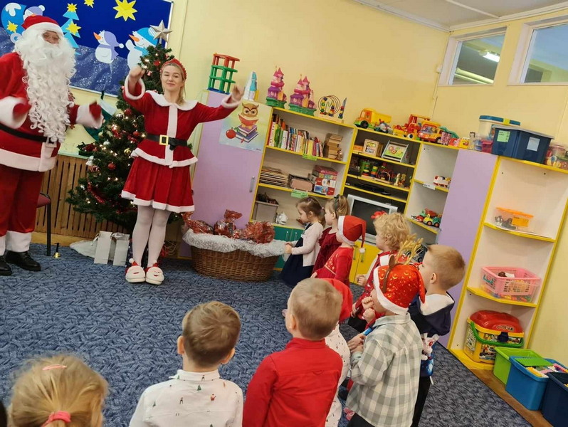 Spotkanie z Mikołajem”- dzieci z poszczególnych grup wiekowych odwiedził niecodzienny gość – pan Mikołaj w asyście pani dyrektor Małgorzaty Bor. Przedszkolaki ze wszystkich grup wiekowych zaprezentowały wiersze i piosenki . Pani dyrektor Małgorzata Bor podziękowała dzieciom za występ, rodzicom za przybycie. Pan Mikołaj wręczył prezenty. Następnie Śnieżynka wspólnie z Mikołajem zaprosiła dzieci do wesołej zabawy. Bardzo dziękujemy rodzicom za pomoc Mikołajowi!!!