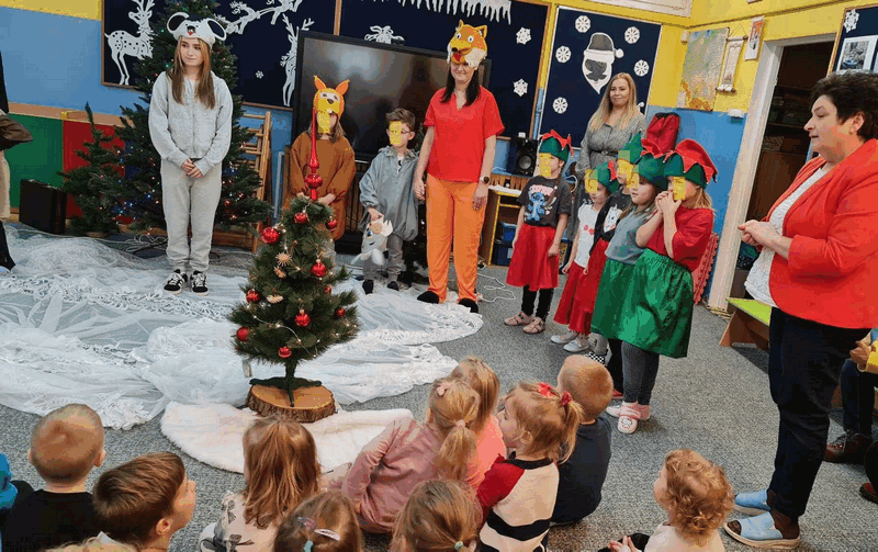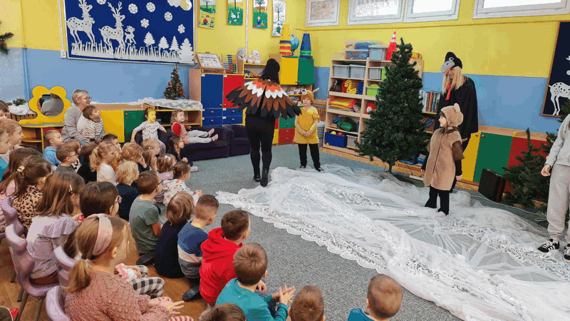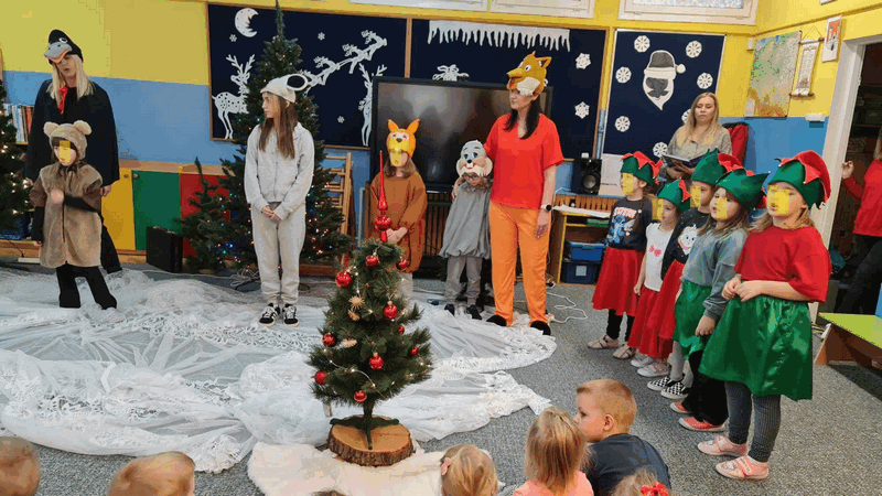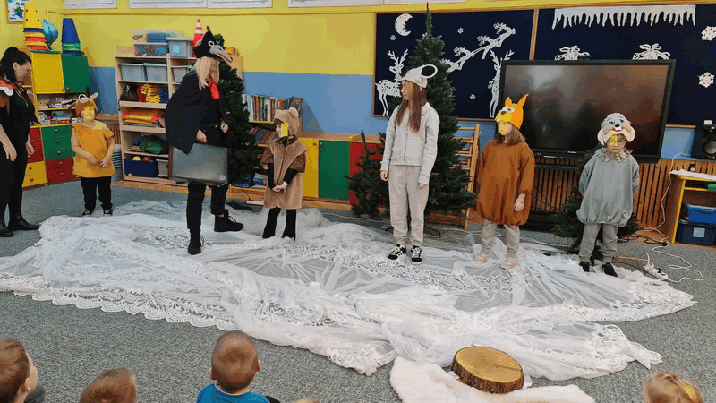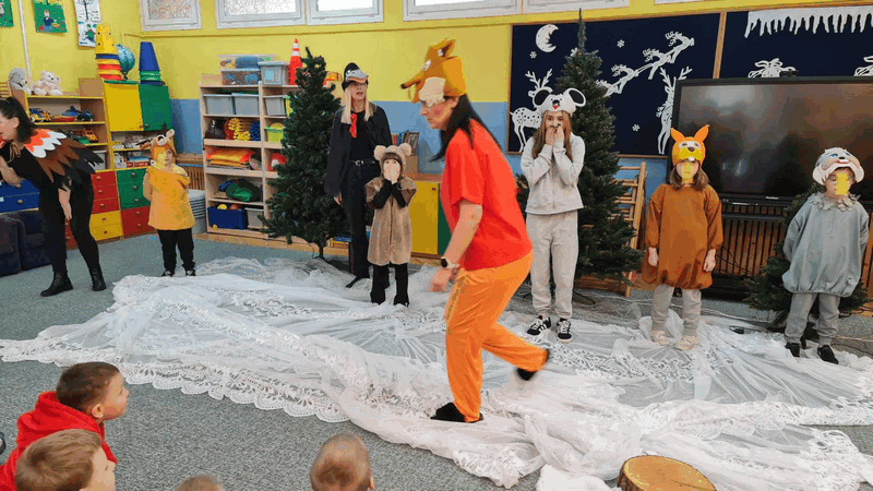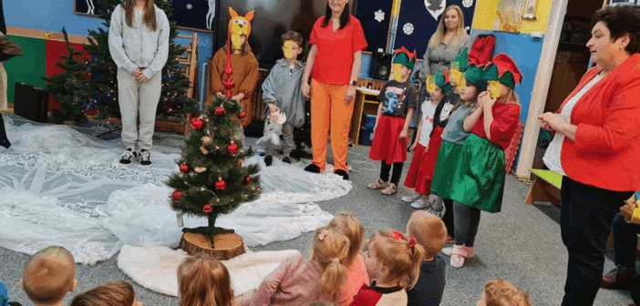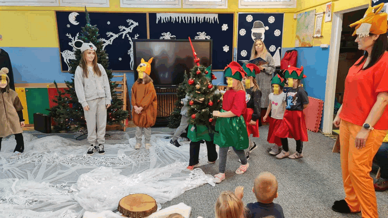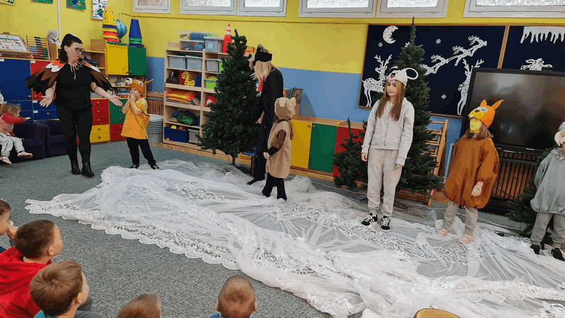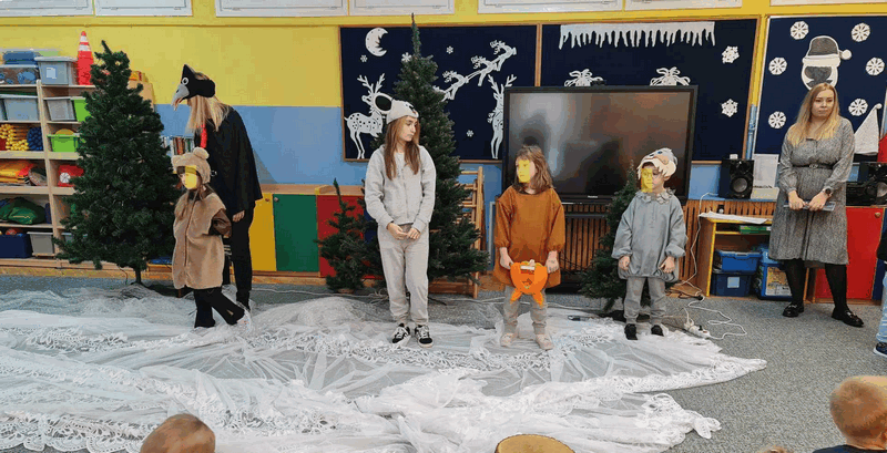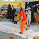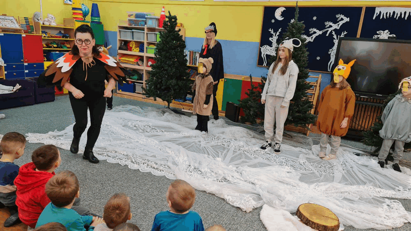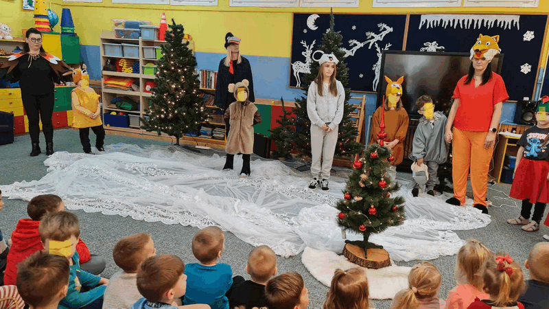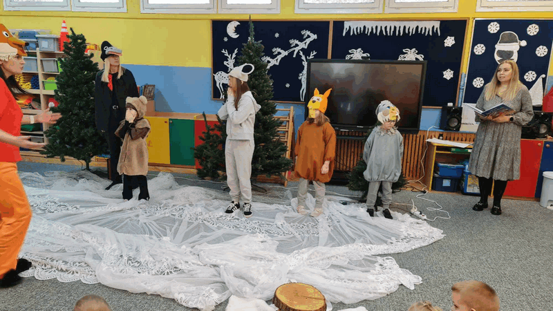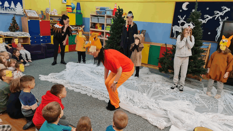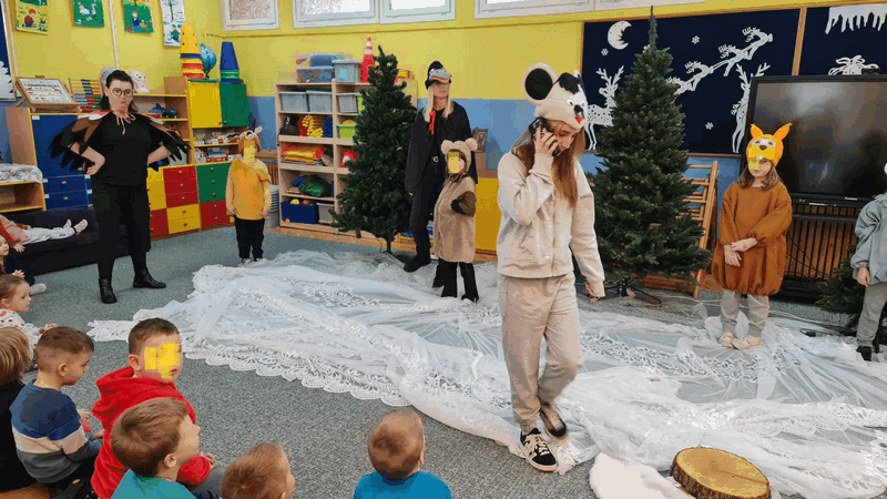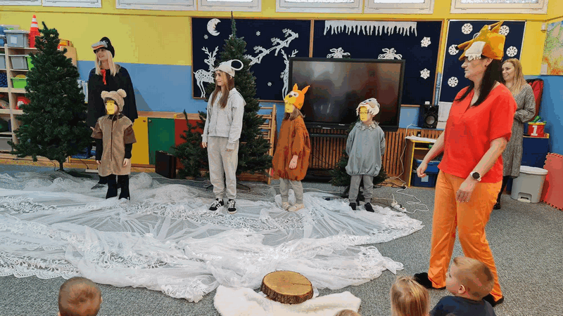 Święta w lesie”- rodzice – aktorzy zaprezentowali bajkę pt. „Święta w lesie” w ramach działalności Teatrzyku Klituś Bajduś. Dorosłych aktorów wspierały dzieci. Brawo!!!Dziękujemy!!!