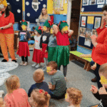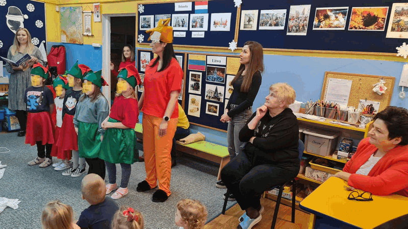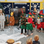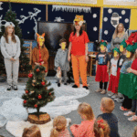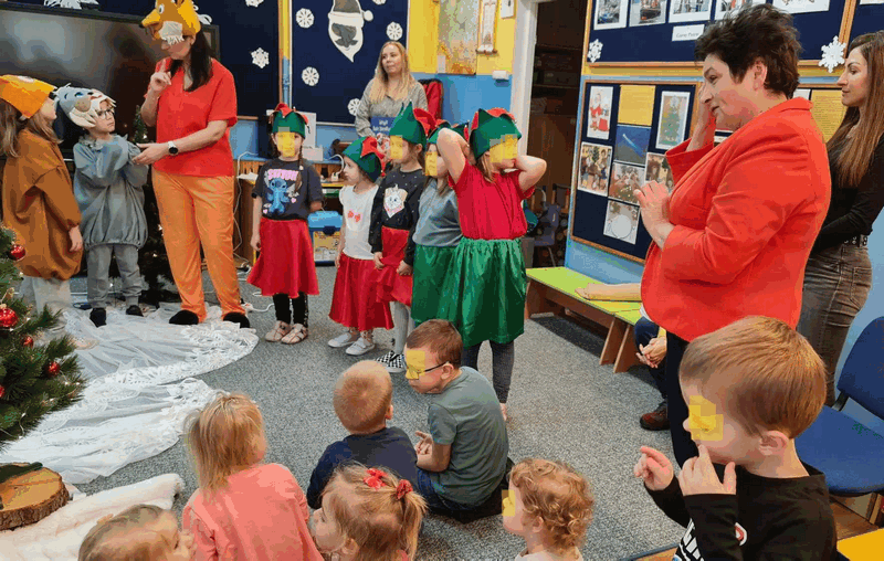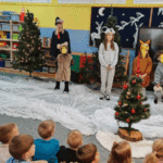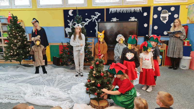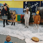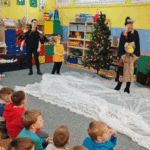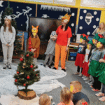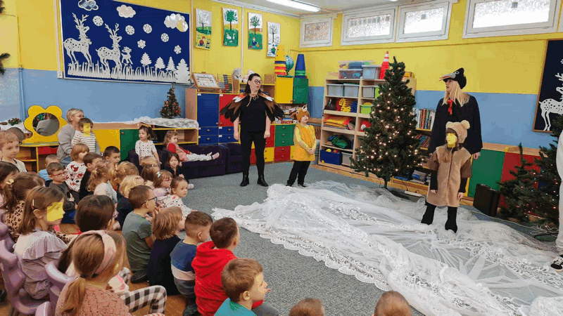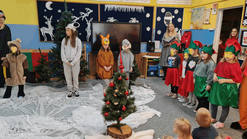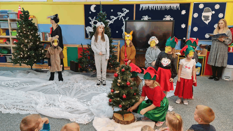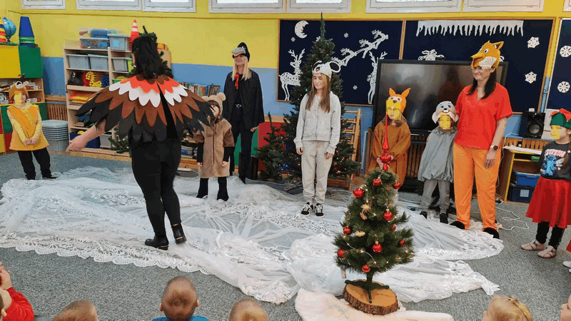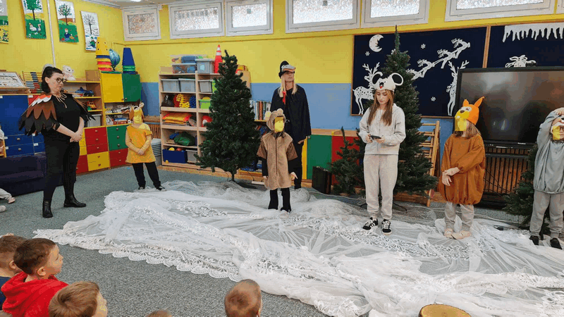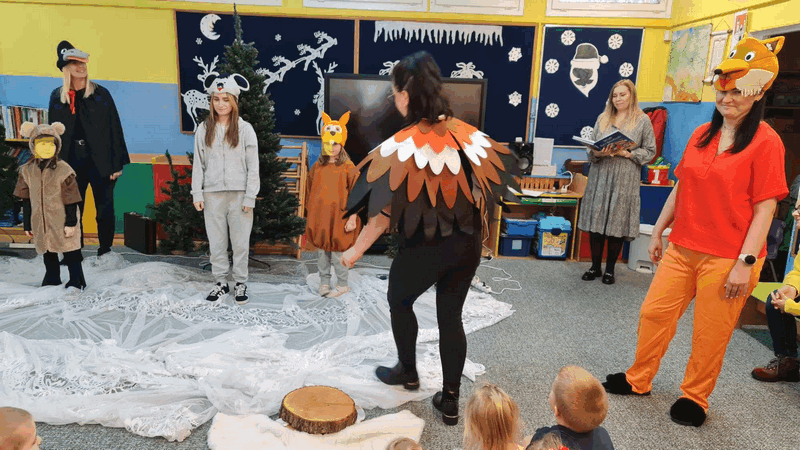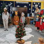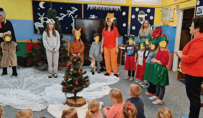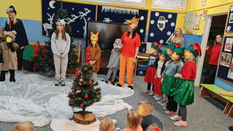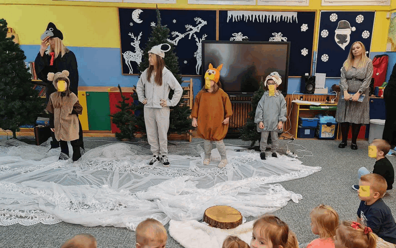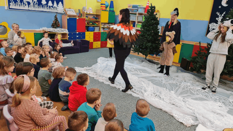 Święta w lesie”- rodzice – aktorzy zaprezentowali bajkę pt. „Święta w lesie” w ramach działalności Teatrzyku Klituś Bajduś. Dorosłych aktorów wspierały dzieci. Brawo!!!Dziękujemy!!!