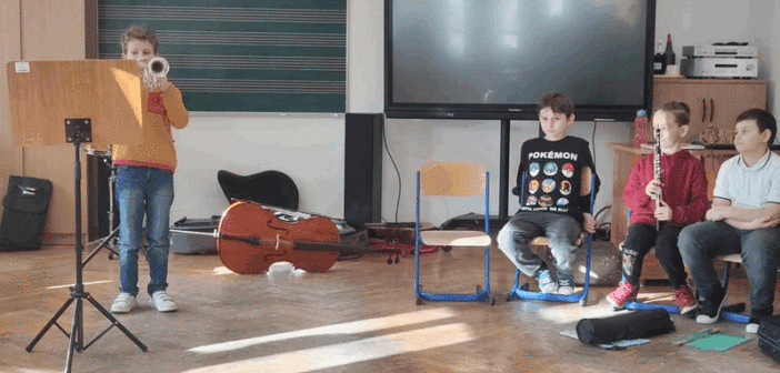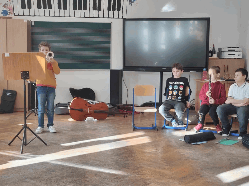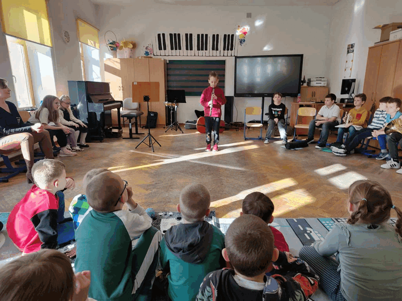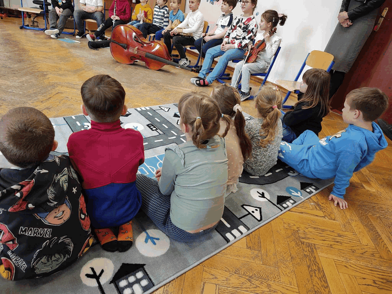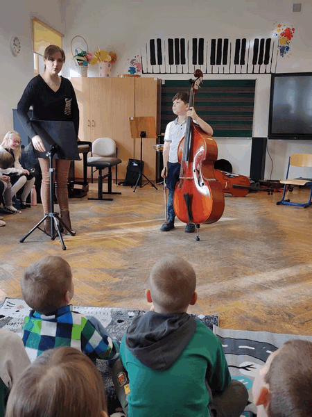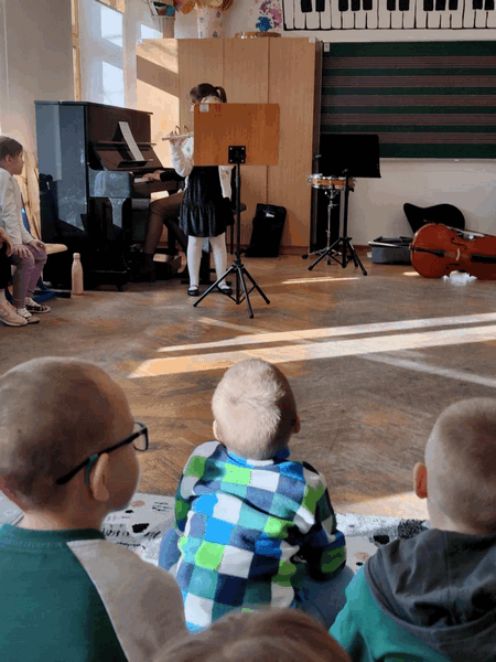 Spacery po muzyku OPUBLIKOWANO dnia 28 stycznia 2025 Przedszkole „Spacery po muzyku”- dzieci z grupy IV brały udział w lekcjach razem z kolegami i koleżankami ze Szkoły Muzycznej, poznawały specyfikę nauki w szkole muzycznej, instrumenty muzyczne. Aktywnie wykonywały przestrzenne nutki.