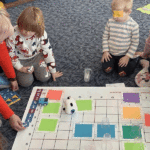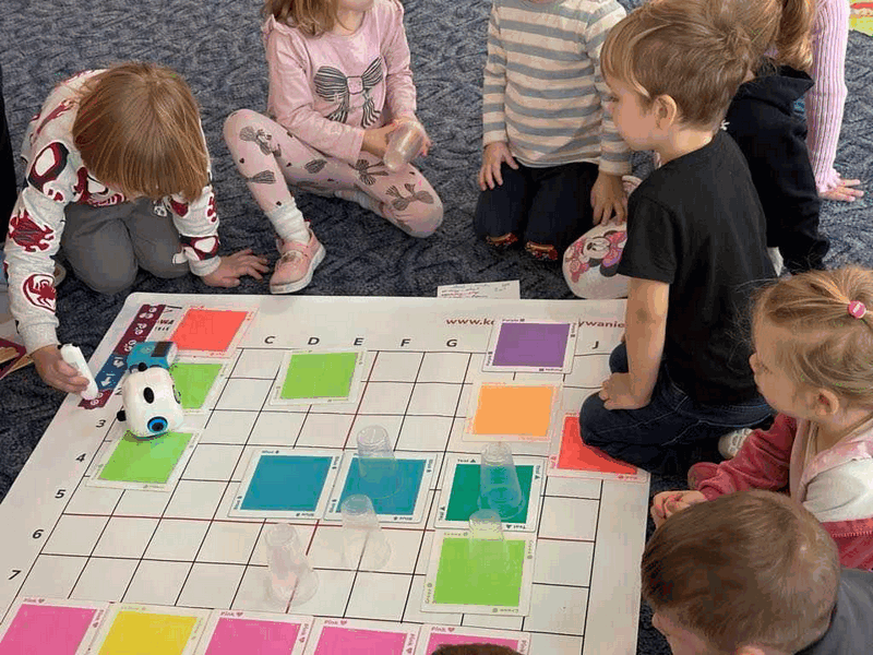 Uczymy się kodowania”- młodsze przedszkolaki poszerzały wiedzę nt. kodowania, bawiły się robotami Indii i Edurobotem. Nie było łatwo, będziemy rozwijać swoje umiejętności.