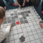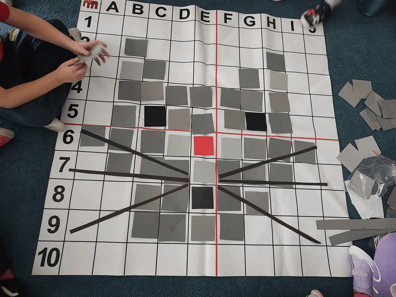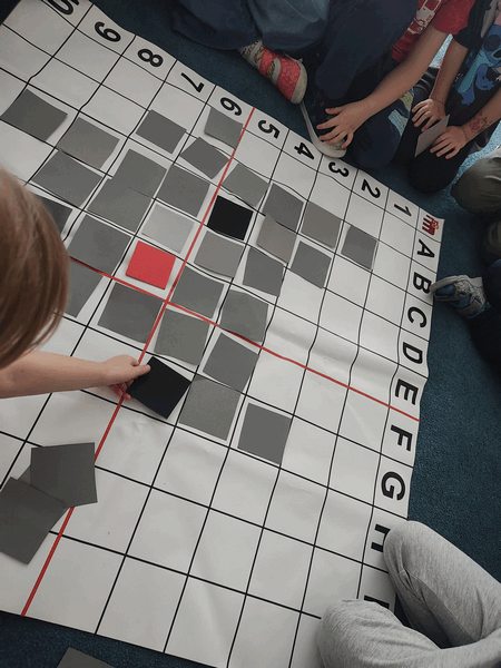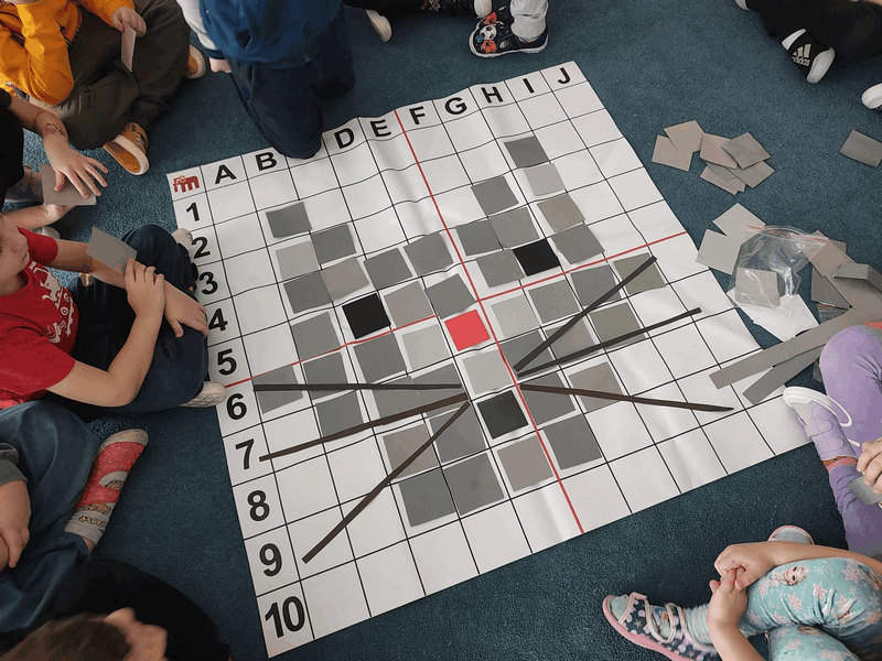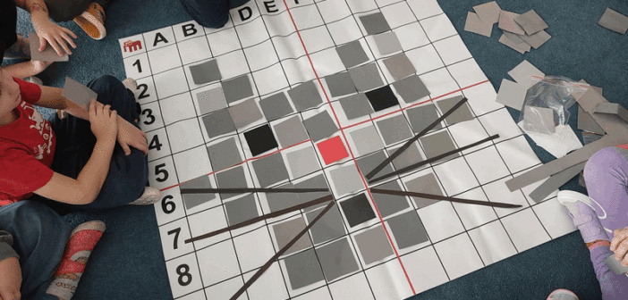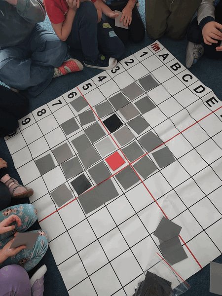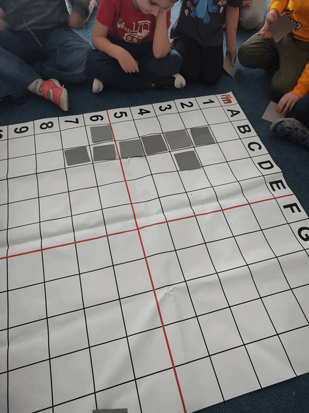 Kodowanie na dywanie – Dzień kota” – dzieci z grupy IV rozwijały swoje kompetencje matematyczne postępując zgodnie z dyktandem graficznym