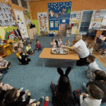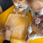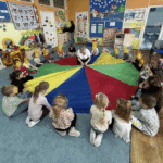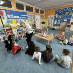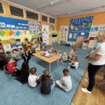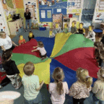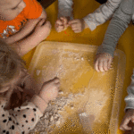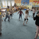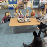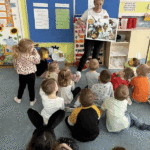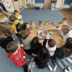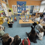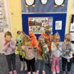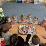 Dzień dinozaura”- dzieci z grupy I i II aktywnie uczestniczyły w zabawach badawczych- poszerzały swoje wiadomości nt. dinozaurów jak żyły czym się odżywiały. Dzieci poszukiwały „kości dinozaurów” bawiąc się w archeologów, obserwowały wybuchający wulkan.