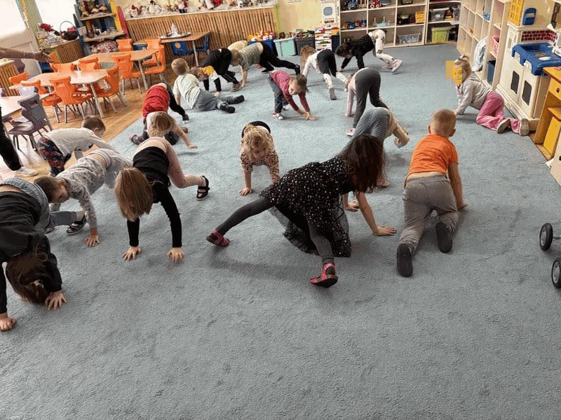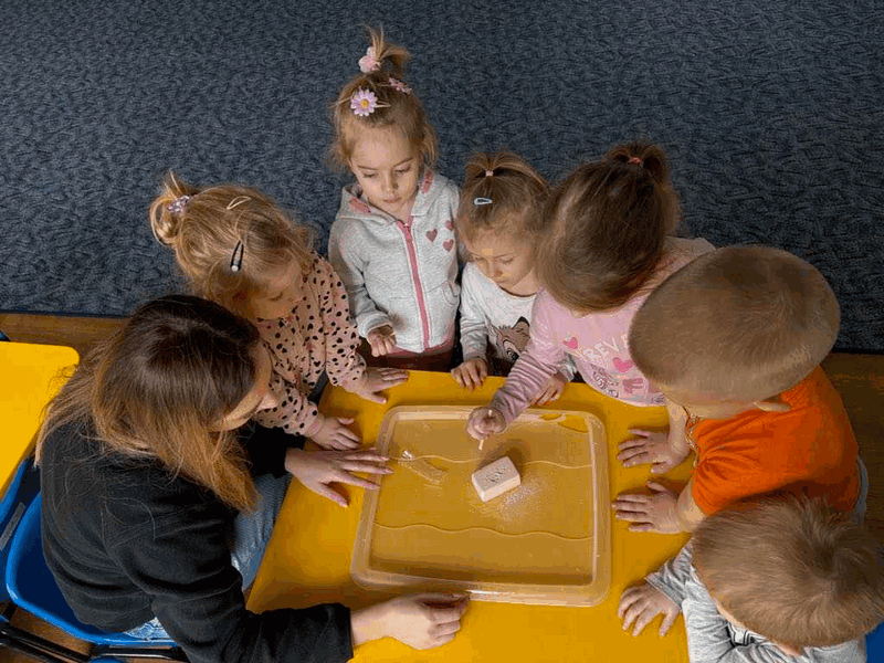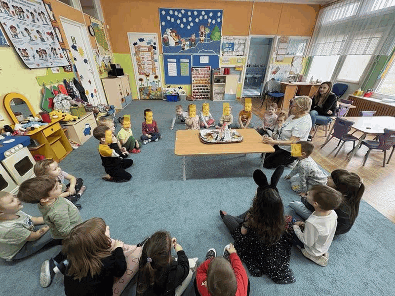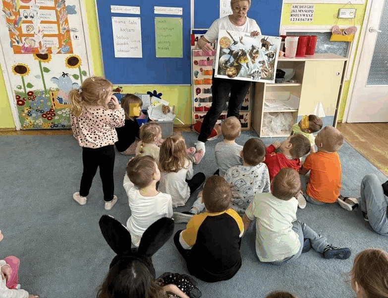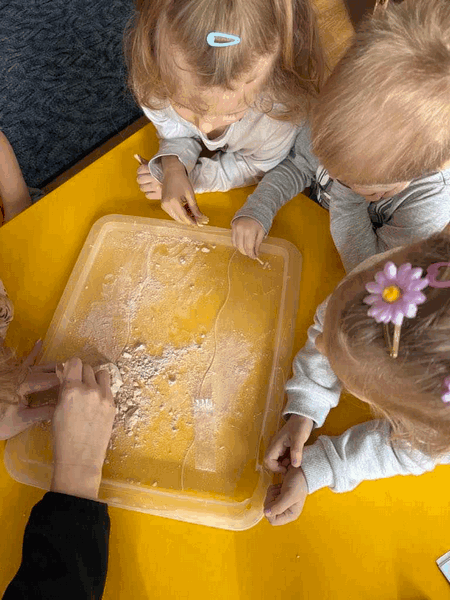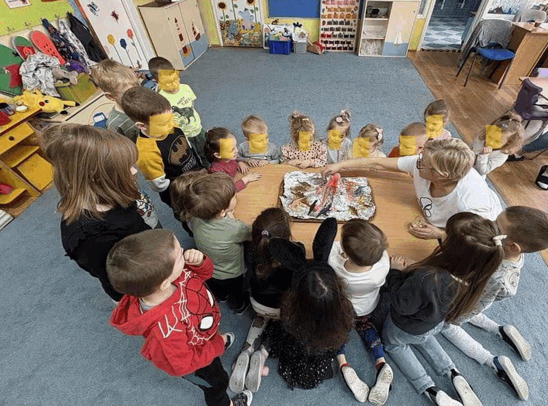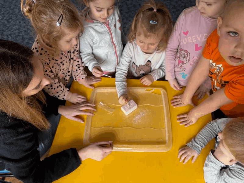Dzień dinozaura”- dzieci z grupy I i II aktywnie uczestniczyły w zabawach badawczych- poszerzały swoje wiadomości nt. dinozaurów jak żyły czym się odżywiały. Dzieci poszukiwały „kości dinozaurów” bawiąc się w archeologów, obserwowały wybuchający wulkan.