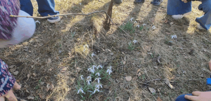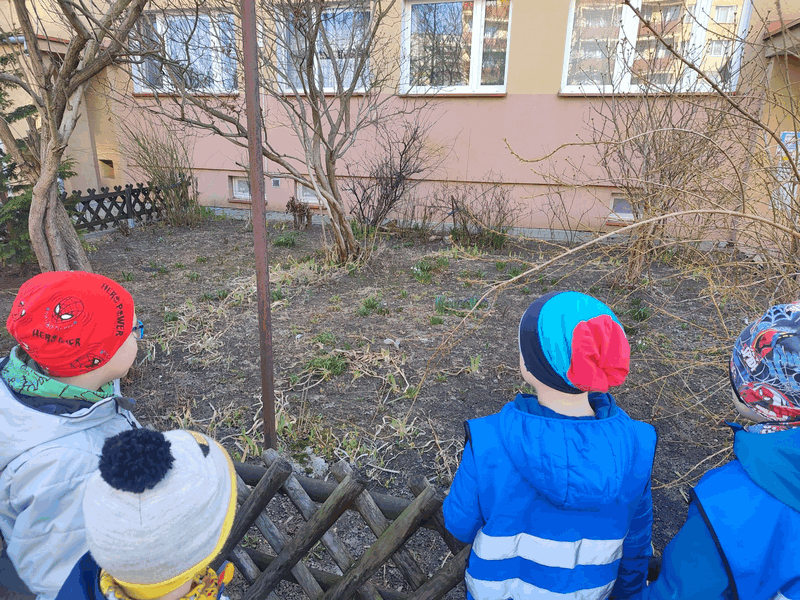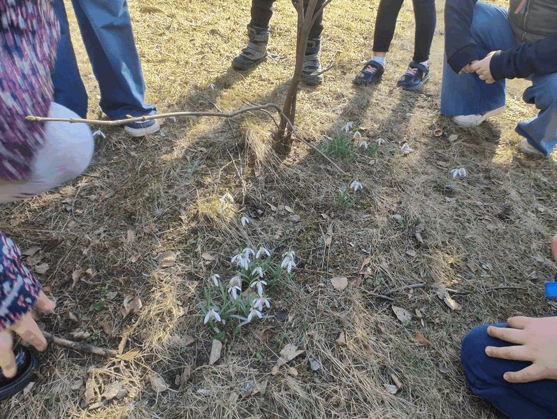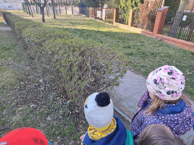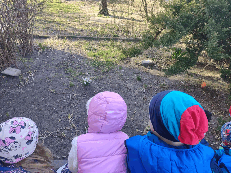 Szukamy wiosny”- dzieci z grupy IV w czasie wycieczki kształciły zainteresowania przyrodnicze szukając symptomów zbliżającej się wiosny. Przebiśniegi, krokusy, zielone pączki na drzewach i krzewach- udokumentowane zostały w czasie wycieczki.