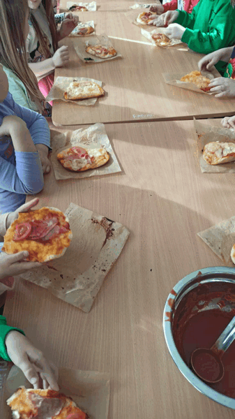 Pizza – nasz ulubiony przysmak, który zrobiliśmy sobie sami.”- Dzieci z grupy II aktywnie uczestniczyły w robieniu pizzy. Brawo!!!