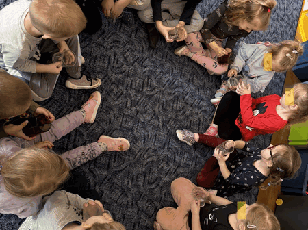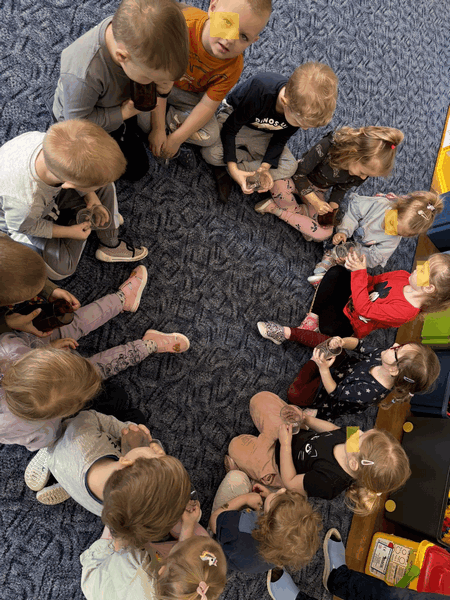 Wiosenne skupienie OPUBLIKOWANO dnia 25 marca 2025 Przedszkole „Wiosenne skupienie”- zabawa integracyjna dzieci z grupy I, które wzmacniały relacje w grupie, kształciły cierpliwość i skupienie przelewając wodę z kubka do kubka. Brawo !!!