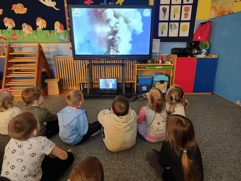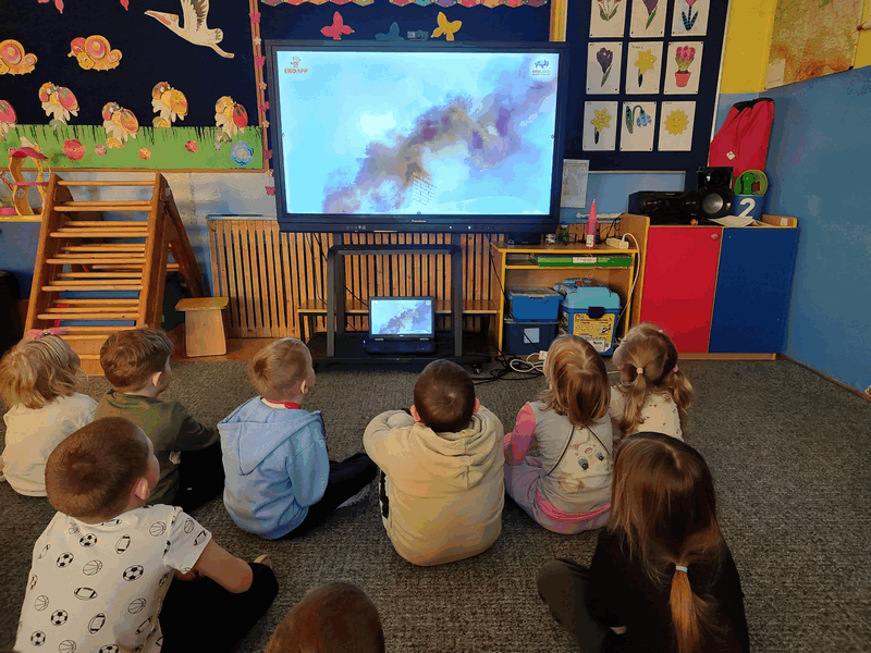 „Czyste powietrze wokół nas”- dzieci z grupy IV oglądały film edukacyjny w ramach realizacji programu edukacyjnego dla przedszkolaków. Założeniem programu jest ochrona dzieci przed szkodliwym wpływem dymu tytoniowego. Dzieci poznały różne źródła dymu, wykonały ciekawe prace plastyczne. Brawo!!!