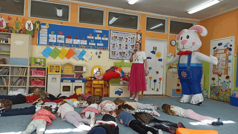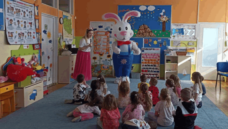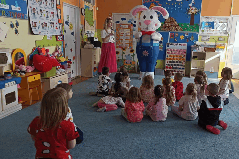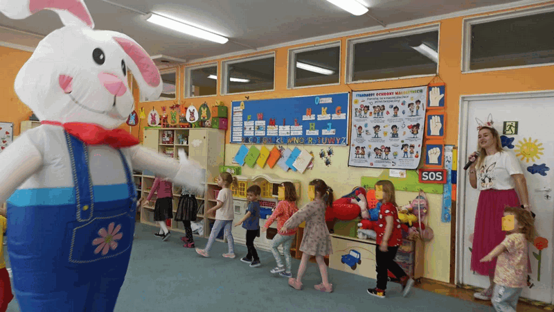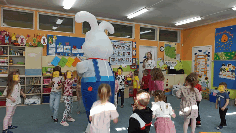Animacje z zajączkiem OPUBLIKOWANO dnia 10 kwietnia 2025 Przedszkole „Animacje z zajączkiem”- dzieci z grupy II brały udział w wielkanocnych zabawach z Bawidełkiem, które odbyły się z inicjatywy rodziców. Dziękujemy!!!