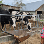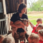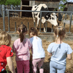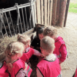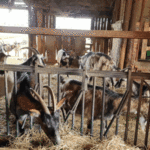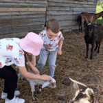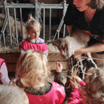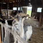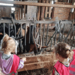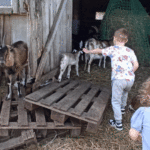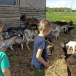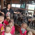 w koziarni – dzieci karmiły kozy