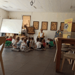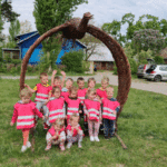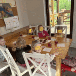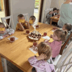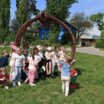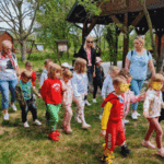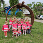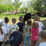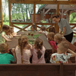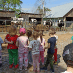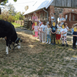 „Wycieczka do Gospodarstwa Ekologicznego w Grzybowie”-dzieci z grupy I i II. Odwiedziły ośrodek Stowarzyszenia ZIARNO znajdujące się przy gospodarstwie ekologicznym w Grzybowie. Dzieci zjadły ekologiczne śniadanie i obiad serwowany przez ośrodek. Poznały zasady funkcjonowania gospodarstwa ekologicznego,dowiedziały się skąd pochodzą produkty żywnościowe; mleko jak się robi sery, masło.