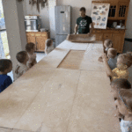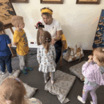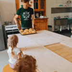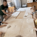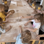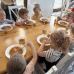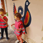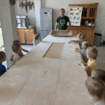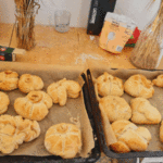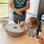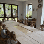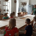„Od ziarna do razowego bochna”- zajęcia w Biopiekarni , gdzie dowiedziały się wszystkiego o rodzajach mąki, zobaczyły jak miele się ziarno. Dzieci własnoręcznie wykonały bułki