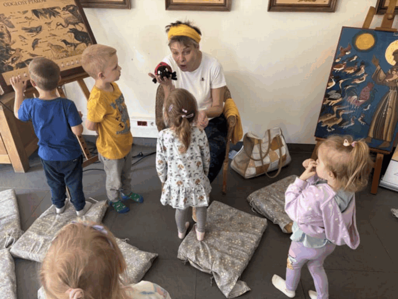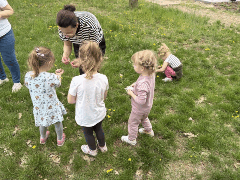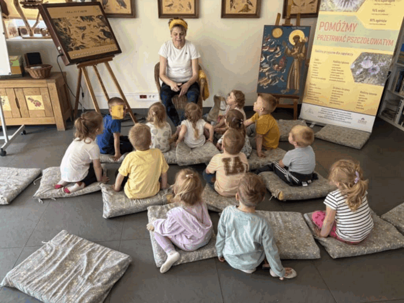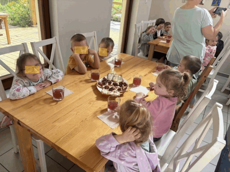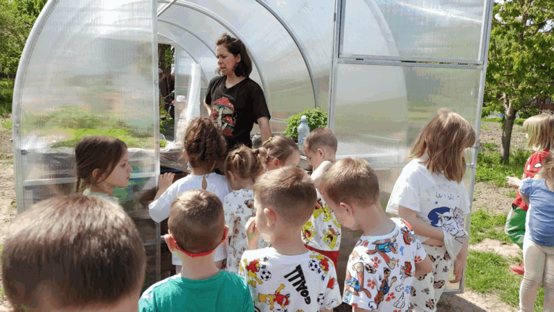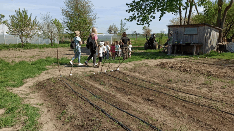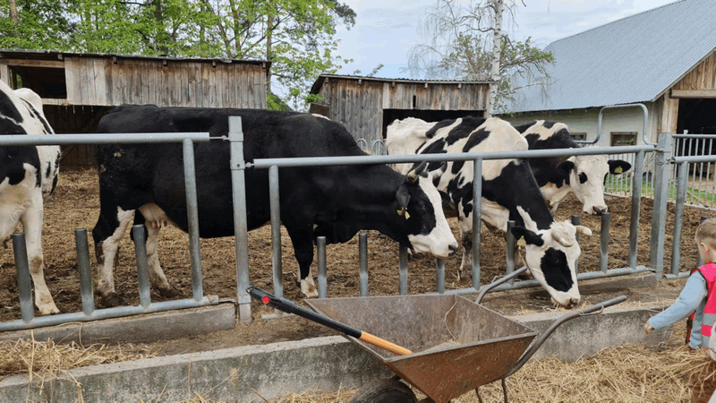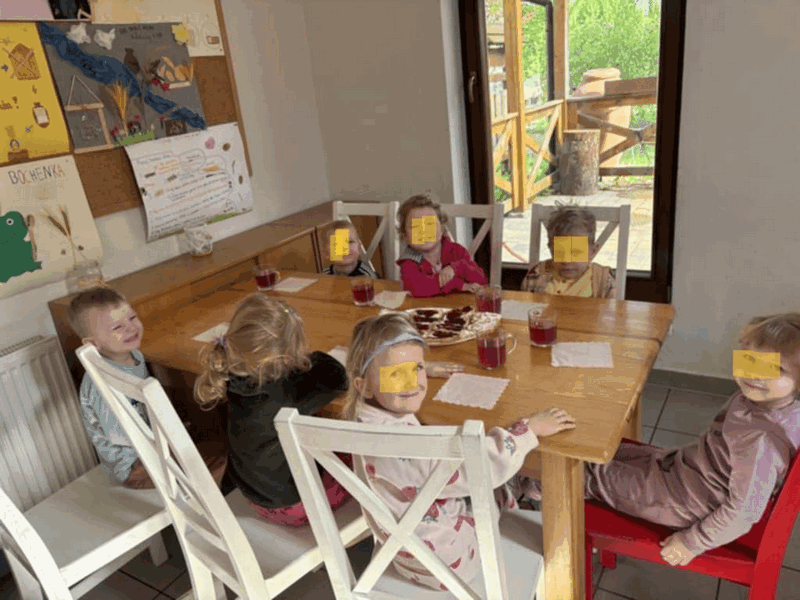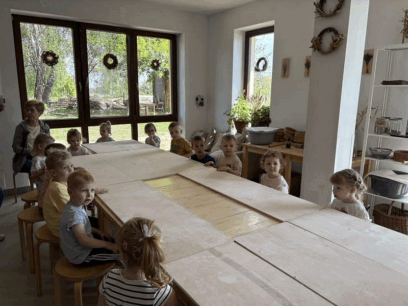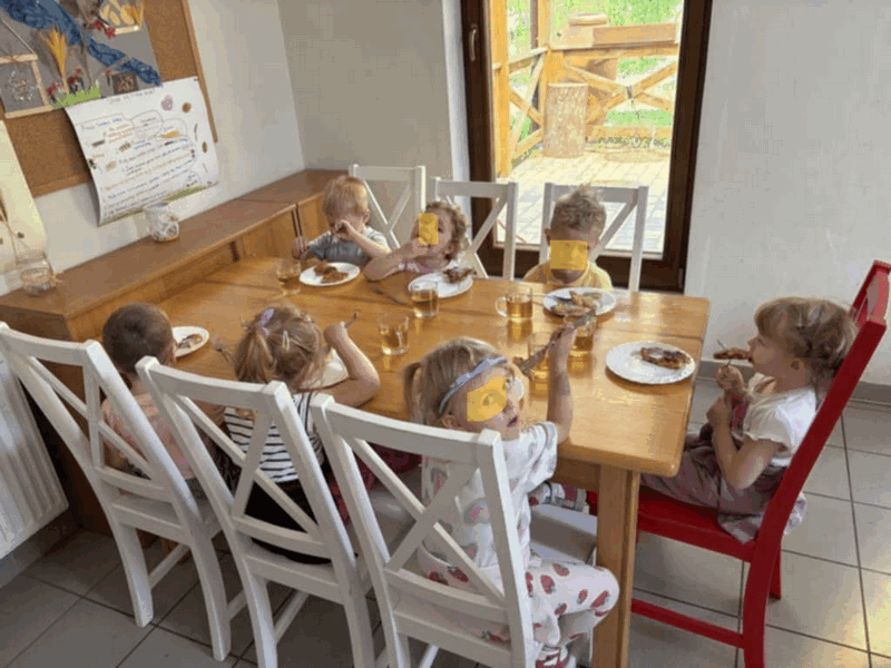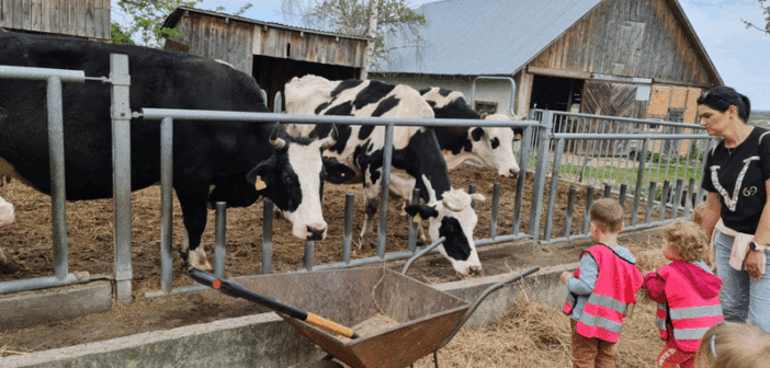„Wycieczka do Gospodarstwa Ekologicznego w Grzybowie”-dzieci z grupy I i II. Odwiedziły ośrodek Stowarzyszenia ZIARNO znajdujące się przy gospodarstwie ekologicznym w Grzybowie. Dzieci zjadły ekologiczne śniadanie i obiad serwowany przez ośrodek. Poznały zasady funkcjonowania gospodarstwa ekologicznego,dowiedziały się skąd pochodzą produkty żywnościowe; mleko jak się robi sery, masło.