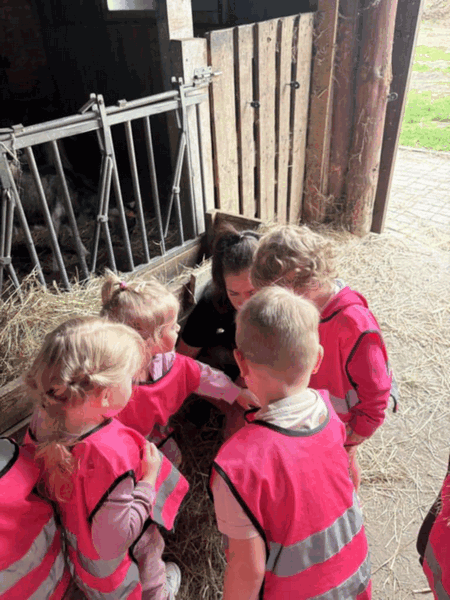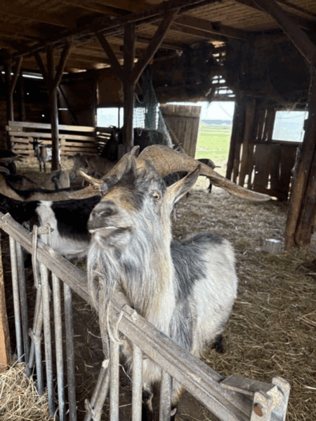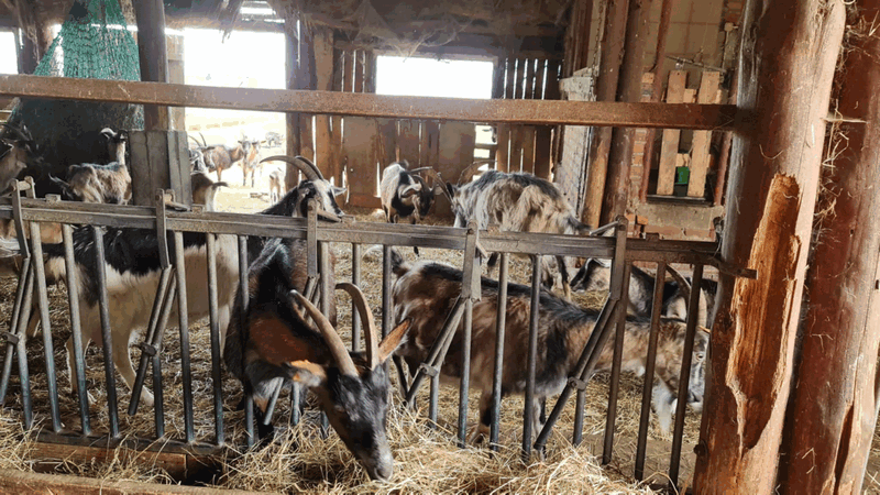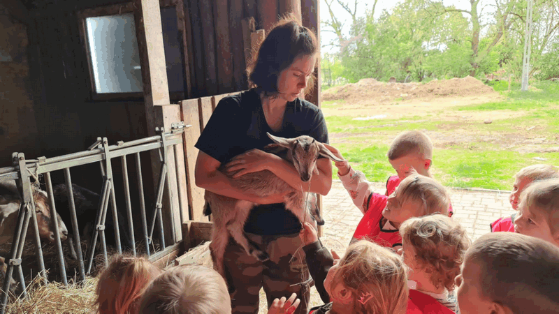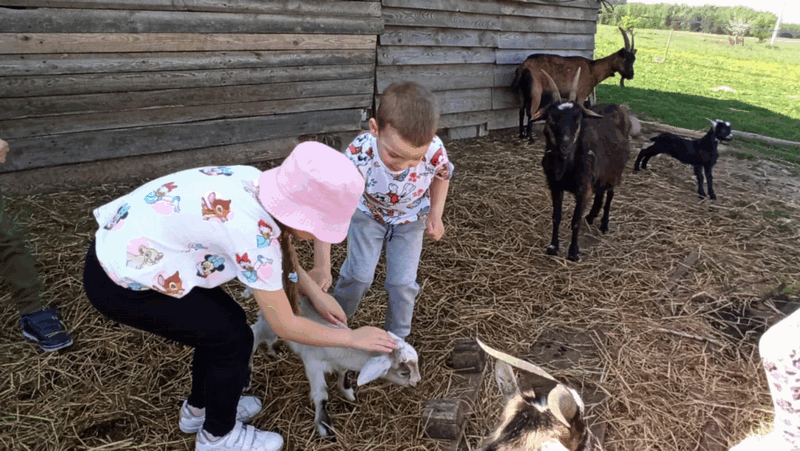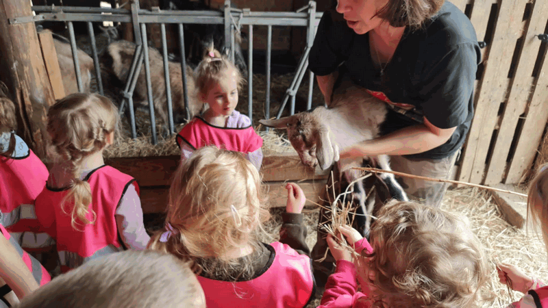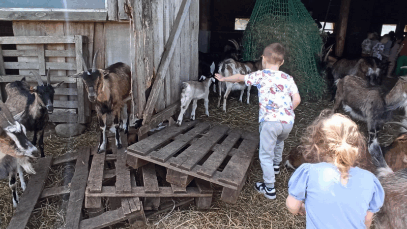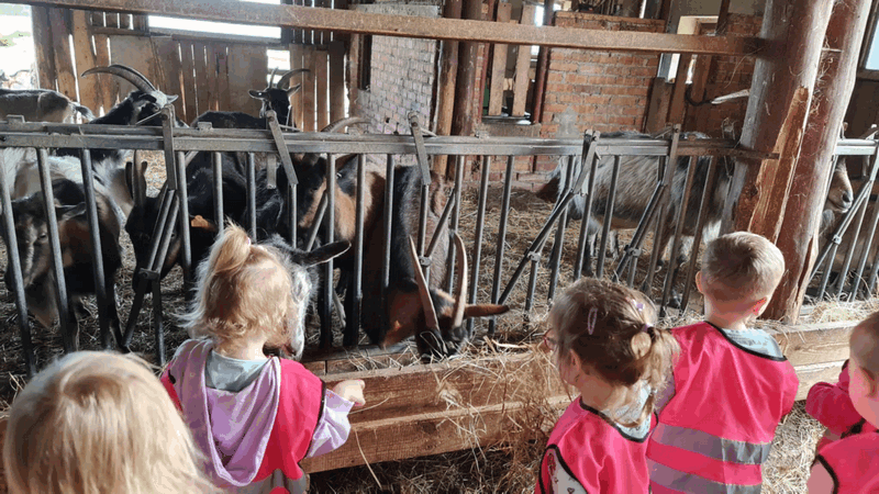 w koziarni – dzieci karmiły kozy