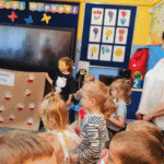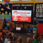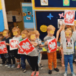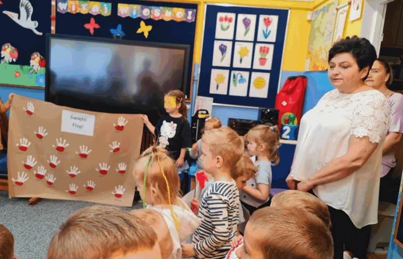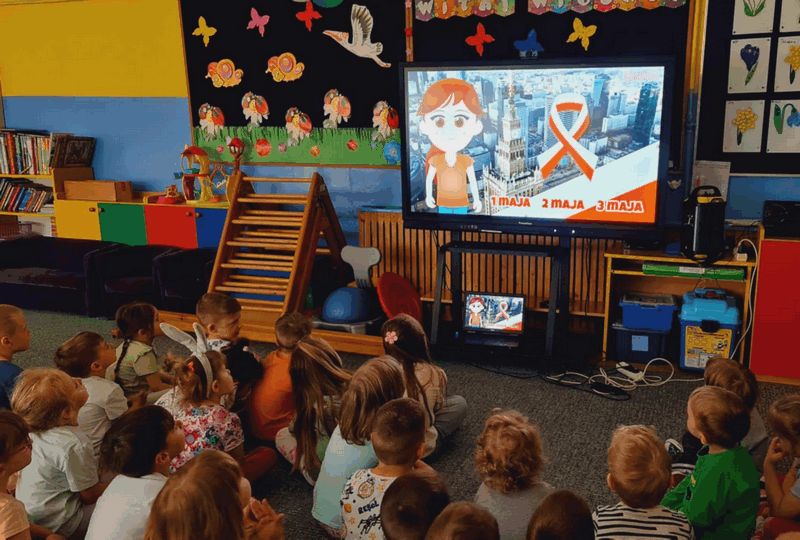 „Majowe święta”- pani dyrektor Małgorzata Bor przybliżyła dzieciom historię majowych świąt ich istotną wartość dla naszego kraju. Cała społeczność naszego przedszkola odśpiewała hymn. Wyrecytowała wiersz ‘Kto ty jesteś ?” Wł. Bełzy, odśpiewała hymn Polski. Pani dyrektor zachęciła dzieci do uczestnictwa w wydarzeniach zaplanowanych w Płocku od 30 kwietnia do 4 maja. Dzieci poszerzyły swoje wiadomości oglądając film edukacyjny „Majowe święta”.
