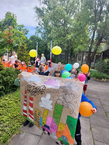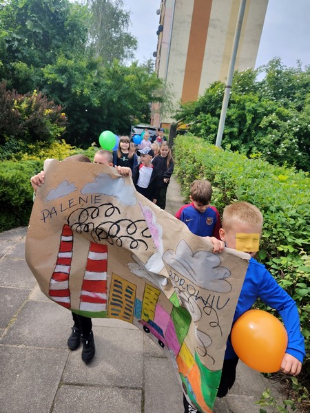 Heppening w obronie czystego powietrza”- dzieci brały udział w happeningu , wygłaszały hasło „Palenie szkodzi zdrowiu”, grały na instrumentach zachęcając okolicznych mieszkańców do rzucania nałogu.