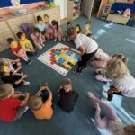„Kodowanie na dywanie – Przyjaciół poznać czas, przedszkole wita nas” – dzieci z grupy IV rozwijały swoje kompetencje matematyczne, logiczne myślenie, umiejętności kodowania oraz wyobraźnię i kreatywność. W czasie kodowania dzieci wzmacniały umiejętności społeczne i komunikacyjne. Brawo!!!
