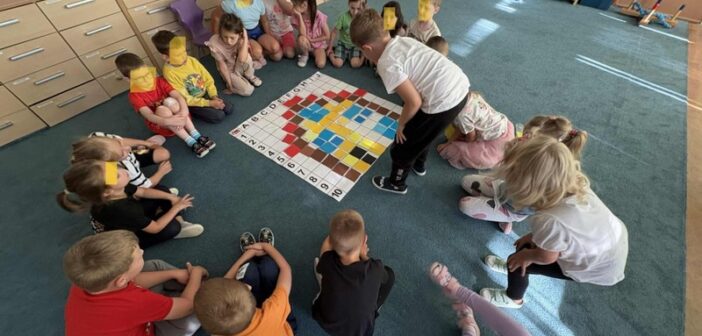 „Kodowanie na dywanie – Przyjaciół poznać czas, przedszkole wita nas” – dzieci z grupy IV rozwijały swoje kompetencje matematyczne, logiczne myślenie, umiejętności kodowania oraz wyobraźnię i kreatywność. W czasie kodowania dzieci wzmacniały umiejętności społeczne i komunikacyjne. Brawo!!!