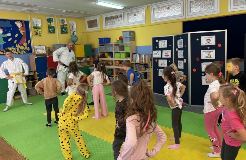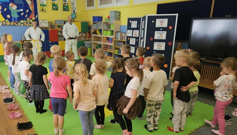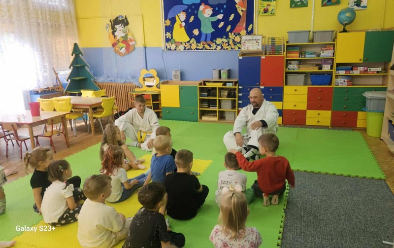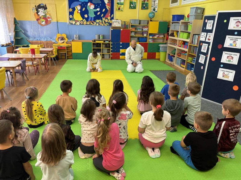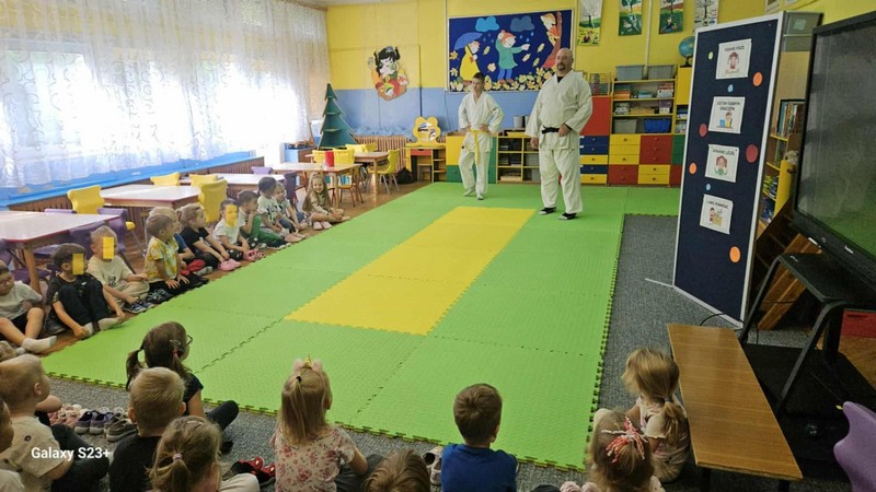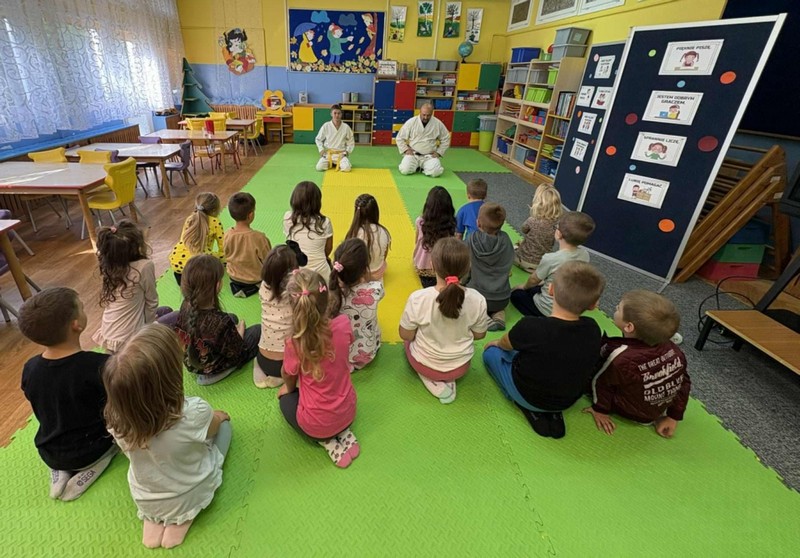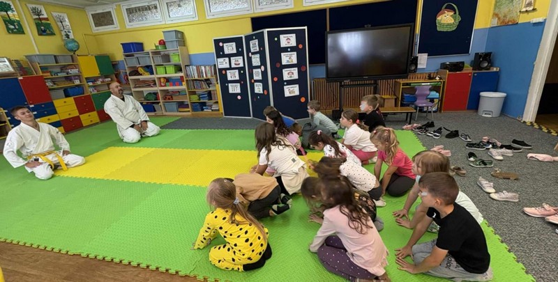 Aikido OPUBLIKOWANO dnia 15 września 2025 Przedszkole „Aikido”-przedszkolaki ze wszystkich grup wiekowych uczestniczyły w warsztatach poprowadzonych przez naszego absolwenta. Grupa II, III Grupa IV