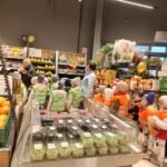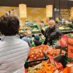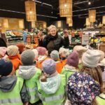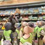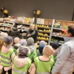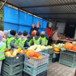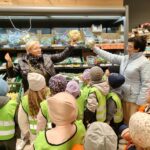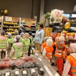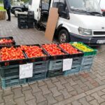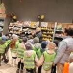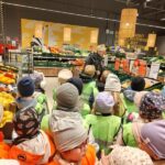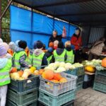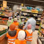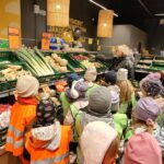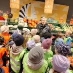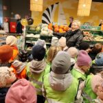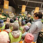 „Kolorowe i pachnące owoce i warzywa” – wycieczka do sklepu owocowo-warzywnego i straganu owocowo-warzywnego. Dzieci z grupy II i III, poznały owoce i warzywa ich właściwości. Pani Basia prezentowała dzieciom warzywa i owoce, omawiając ich właściwości zdrowotne. Przedszkolaki szukały na owocach, warzywach symbolu zielonego listka, wskazującego produkty ekologiczne.