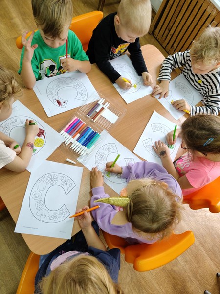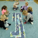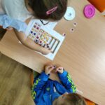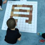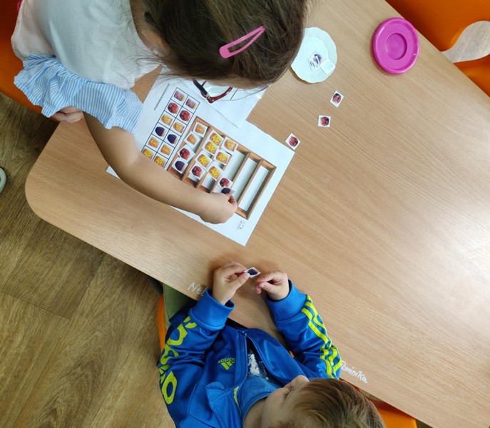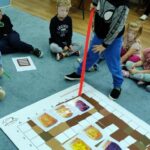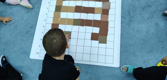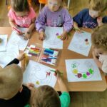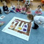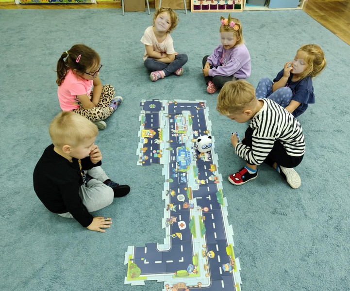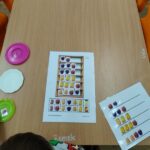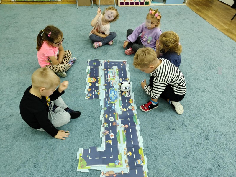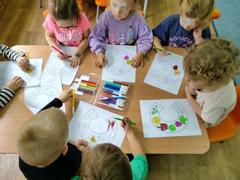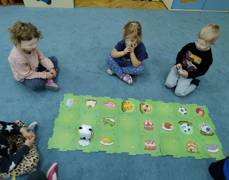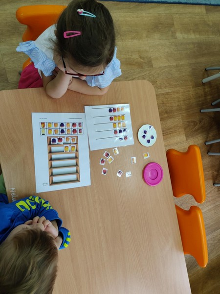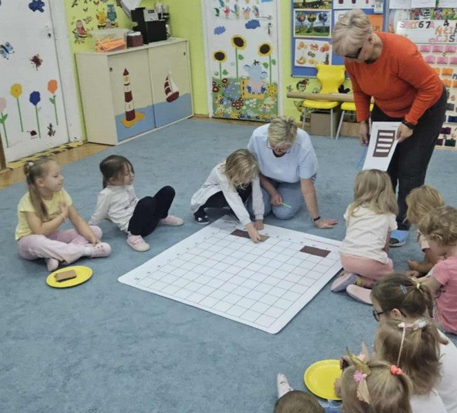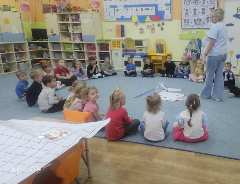 „Kodowanie na dywanie „Jesienne przetwory” -z ogromnym zaangażowaniem dzieci 4-5 letnie z grupy II i III, wykonywały zadanie. Rozwijały swoje kompetencje matematyczne, współpracowały na macie. Dzieci poszerzały wiadomości nt. wybranych witamin, owocowych i warzywnych przetworów. Układały obrazki zgodnie z podanymi warunkami, kształciły współpracę w grupie. Brawo!!!