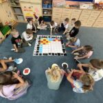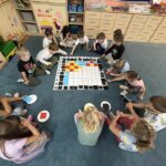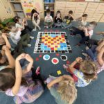 „Pikselowe CodeWeek’owe serduszko z Kodowanie na dywanie” – dzieci z grupy IV wykonały jeden z tematów wydarzeń w ramach Europejskiego Tygodnia Kodowania (CodeWeek2025) ogólnoeuropejskiej inicjatywy, której celem jest pokazanie, że programowanie i cyfrowa kreatywność mogą być świetną zabawą dla każdego bez względu na wiek czy posiadane doświadczenie. Wspólne aktywności uczą logicznego myślenia, rozwijają umiejętności współpracy i kreatywnego rozwiązywania problemów. W CodeWeek chodzi nie tylko o pisanie kodu, ale także o odkrywanie, że technologia może być narzędziem tworzenia, odkrywania świata i wyrażania siebie. W ramach Międzynarodowego Programu Kodowanie na dywanie wspólnie z innymi placówkami w Polsce „Zawalczmy” o wysokie miejsce Polski w tym pozytywnym wyścigu.