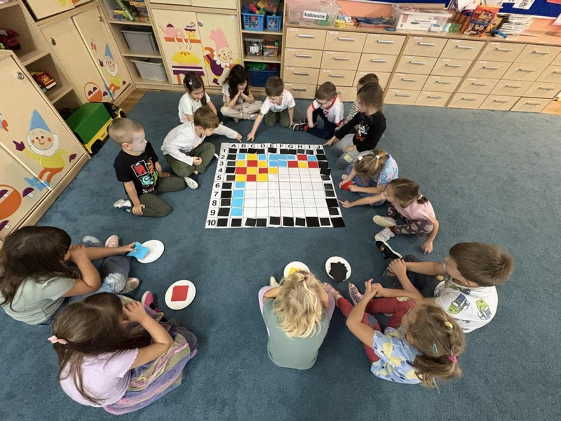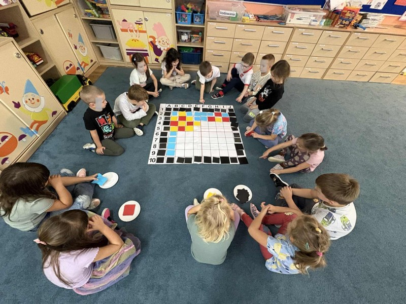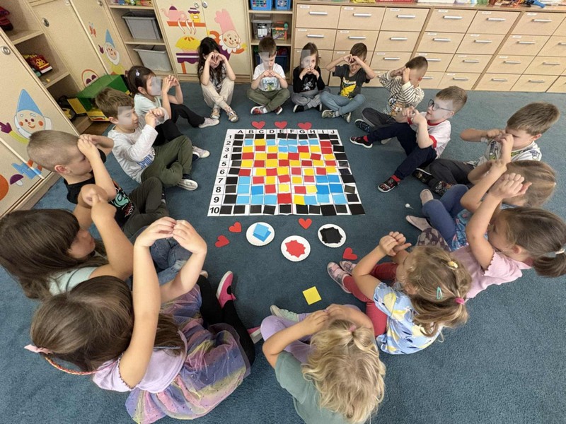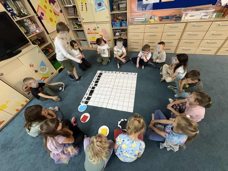 „Pikselowe CodeWeek’owe serduszko z Kodowanie na dywanie” – dzieci z grupy IV wykonały jeden z tematów wydarzeń w ramach Europejskiego Tygodnia Kodowania (CodeWeek2025) ogólnoeuropejskiej inicjatywy, której celem jest pokazanie, że programowanie i cyfrowa kreatywność mogą być świetną zabawą dla każdego bez względu na wiek czy posiadane doświadczenie. Wspólne aktywności uczą logicznego myślenia, rozwijają umiejętności współpracy i kreatywnego rozwiązywania problemów. W CodeWeek chodzi nie tylko o pisanie kodu, ale także o odkrywanie, że technologia może być narzędziem tworzenia, odkrywania świata i wyrażania siebie. W ramach Międzynarodowego Programu Kodowanie na dywanie wspólnie z innymi placówkami w Polsce „Zawalczmy” o wysokie miejsce Polski w tym pozytywnym wyścigu.