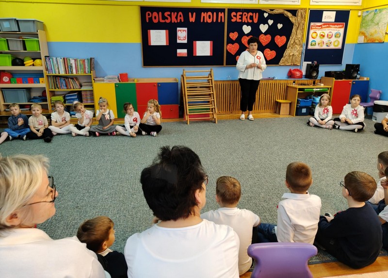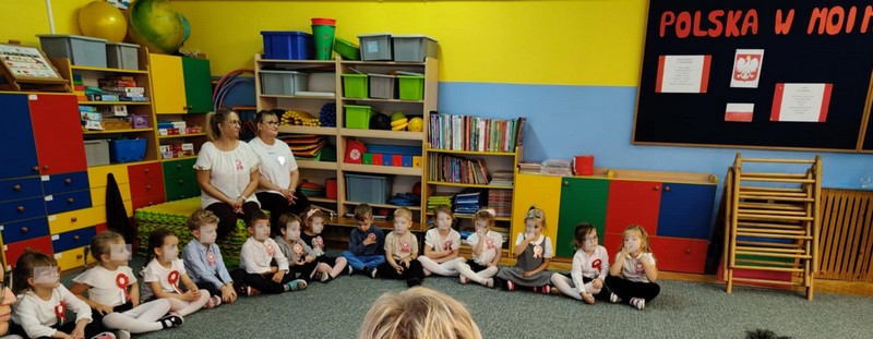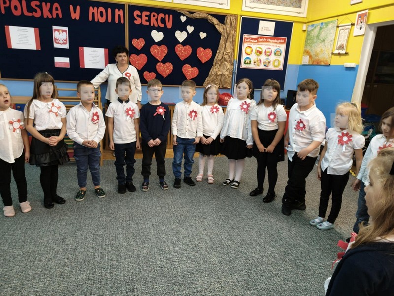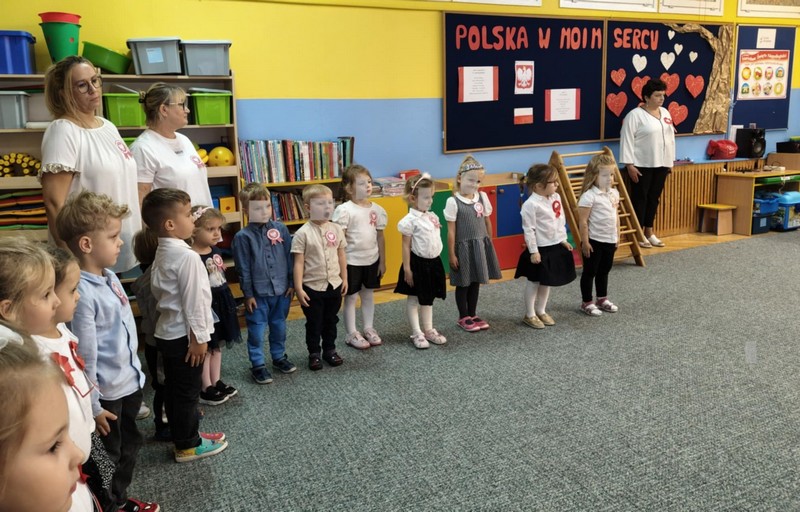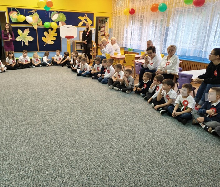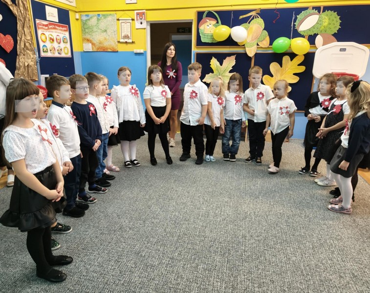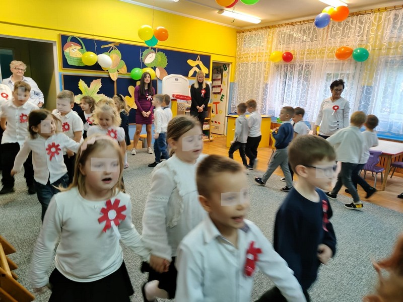 „Szkoła do hymnu#” – o godz. 11.11 dzieci z naszego przedszkola, wraz z całym personelem wspólnie odśpiewali hymn Polski „Mazurek Dąbrowskiego”. Pani dyrektor Małgorzata Bor, przybliżyła przedszkolakom historię Święta Niepodległości. Zwieńczeniem uroczystego apelu, była wspólna zabawa dzieci, śpiewanie piosenek i wesoły taniec.