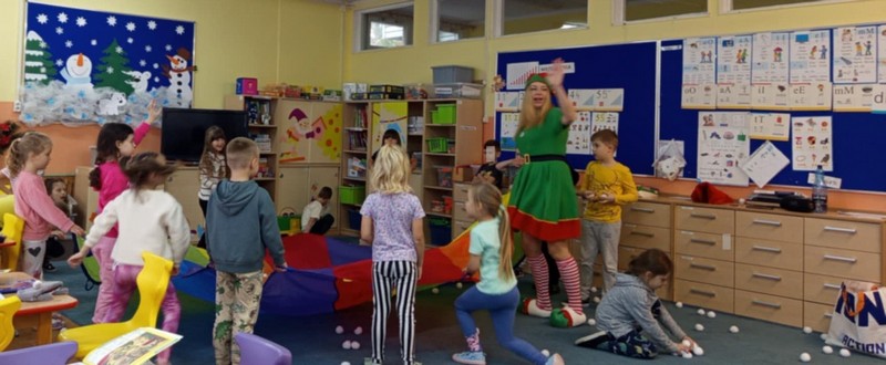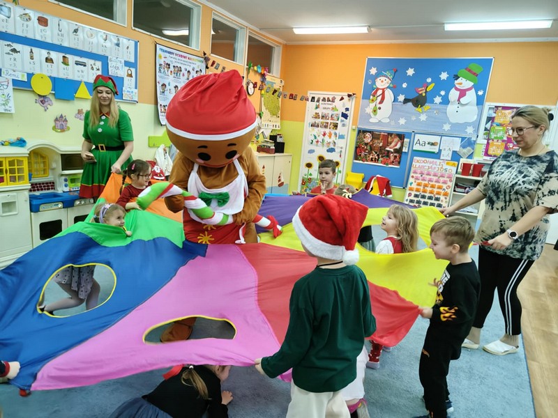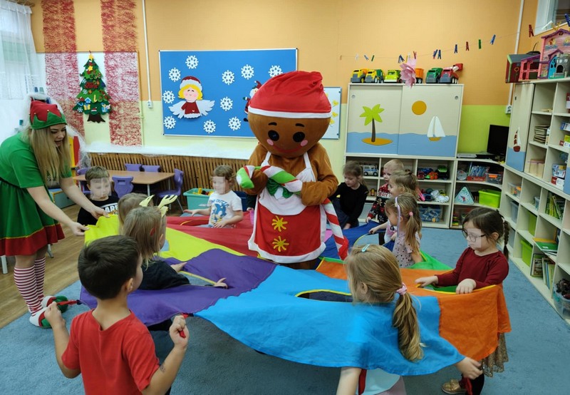 Świąteczne Animacje OPUBLIKOWANO dnia 3 grudnia 2025 Przedszkole „Świąteczne Animacje” – zabawy Mikołajkowe prowadzone przez Animatorkę i Piernika – Zabawiaki- sponsorowane przez rodziców. Dziękujemy!!!