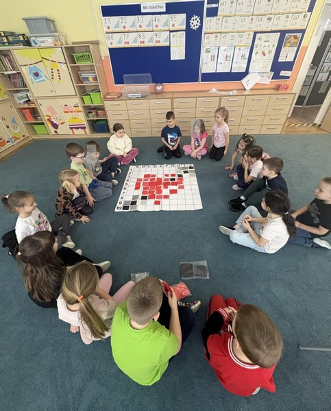 Serce – kodowanie na dywanie OPUBLIKOWANO dnia 16 lutego 2026 Przedszkole „Serce – kodowanie na dywanie” – dzieci z grupy IV rozwijały logiczne myślenie w czasie aktywności z kodowaniem. Brawo!!!