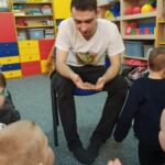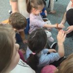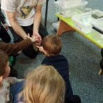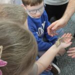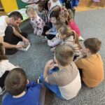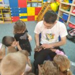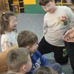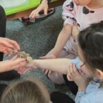 „Spotkanie z gadami” – w przedszkolu odbyła się niezwykła lekcja przyrody, dzieci miały okazję spotkać się z jaszczurką, gekonem, wężem, skorpionem, patyczakiem oraz pająkiem. Zwalczały animozję dotykając, oglądając zwierzęta. Poszerzały informacje nt. ich budowy, zwyczajów oraz sposobu odżywiania.