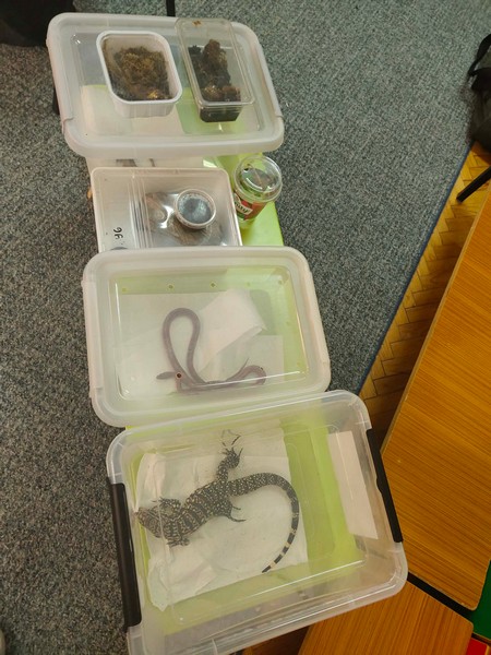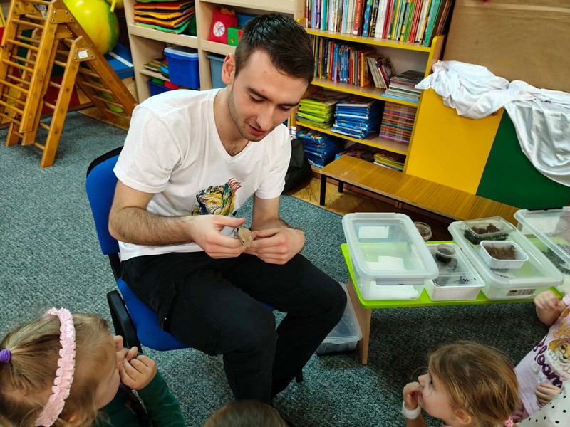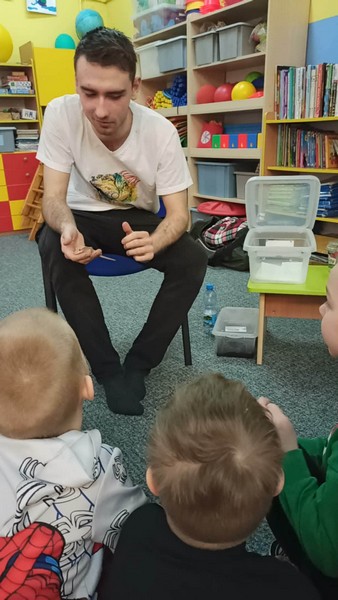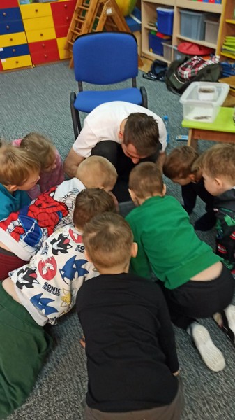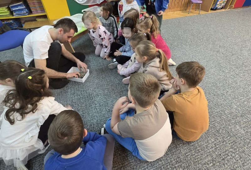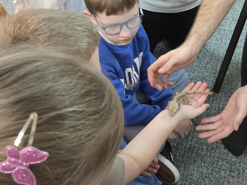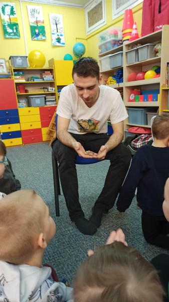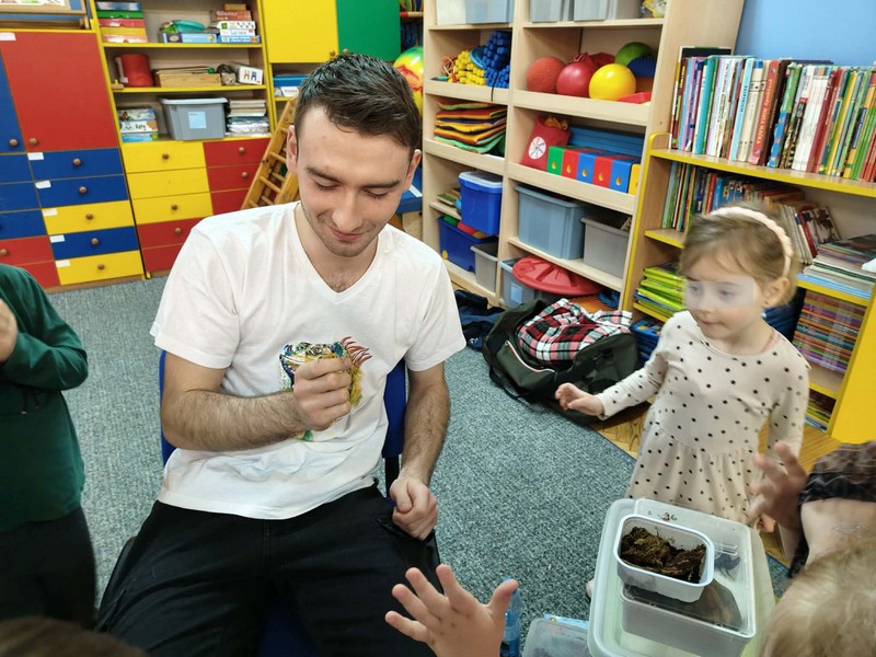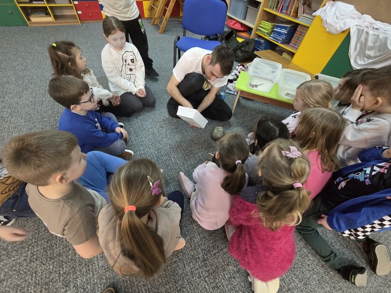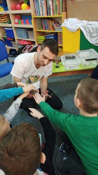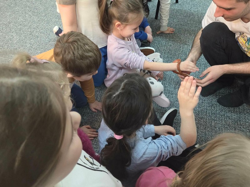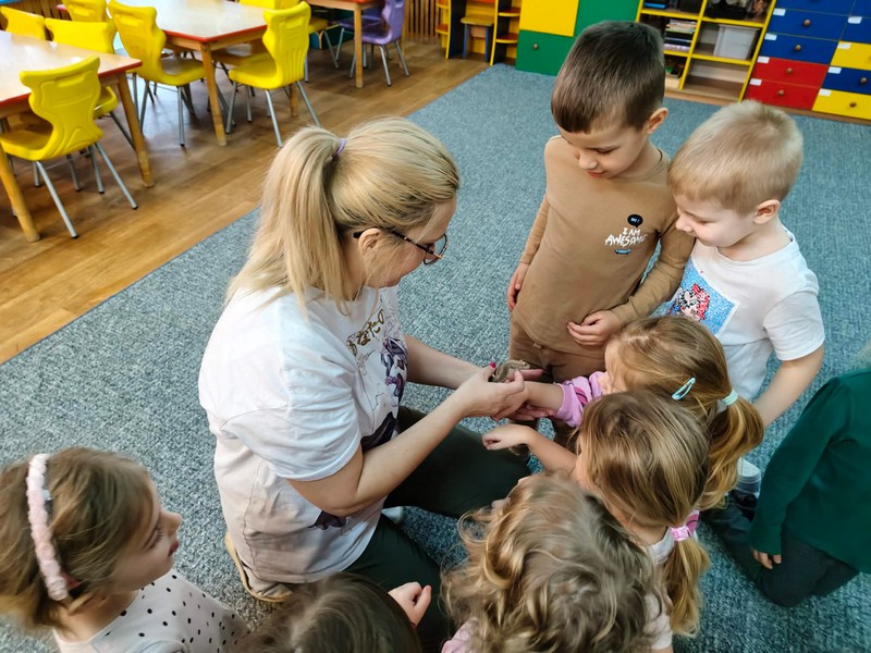 „Spotkanie z gadami” – w przedszkolu odbyła się niezwykła lekcja przyrody, dzieci miały okazję spotkać się z jaszczurką, gekonem, wężem, skorpionem, patyczakiem oraz pająkiem. Zwalczały animozję dotykając, oglądając zwierzęta. Poszerzały informacje nt. ich budowy, zwyczajów oraz sposobu odżywiania.