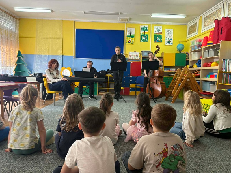 Audycja muzyczna OPUBLIKOWANO dnia 15 kwietnia 2026 Przedszkole „Audycja muzyczna” – dzieci z grupy IV aktywnie uczestniczyły w audycji muzycznej z muzykami Orkiestry Symfonicznej Płockiej im. Lutosławskiego.