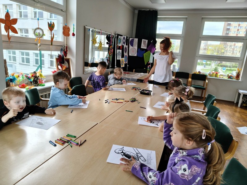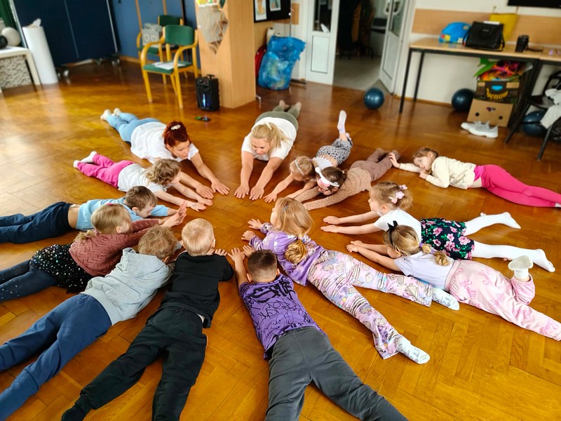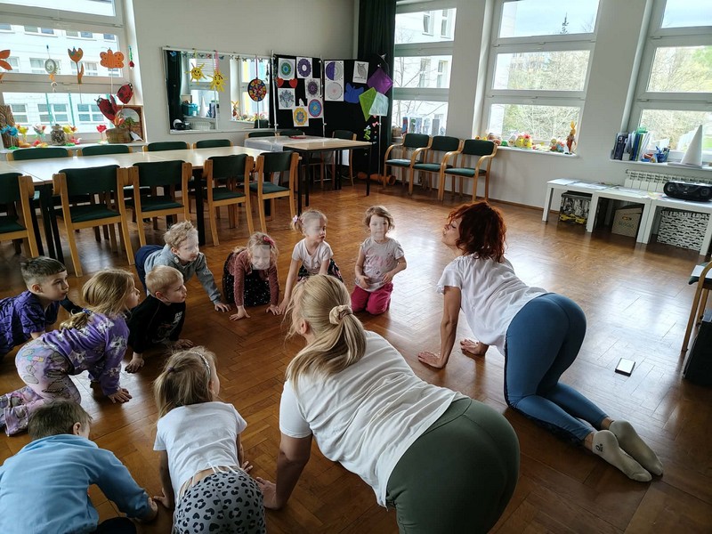 „Las i ptaki” – dzieci z grupy II brały aktywny udział w warsztatach z elementem yogi w Klubie Osiedlowym Dworcowa, Płockiej Spółdzielni Mieszkaniowej.