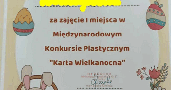 „Karta wielkanocna”- Międzynarodowy Konkurs Plastyczny organizowany przez MP Nr 37, Wiktoria z grupy II zajęła…