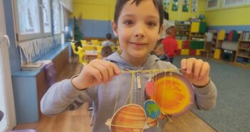 „Układ słoneczny”- dzieci z grupy V wykonywały przestrzenną pracę plastyczną- kształciły ekspresję twórczą, percepcję wzrokowo-ruchową.