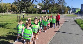 „Bezpieczne poruszam się po ulicy” – dzieci z grupy V w czasie wycieczki na skrzyżowanie,…