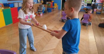 „Wyścigi z jajeczkiem”- dzieci z grupy V kształciły sprawność fizyczną , umiejętność współpracy, doskonaliły koncentrację…