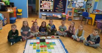 „Zakodowana choinka”- dzieci z grupy V rozwijały swoje kompetencje matematyczne w „kodowaniu na dywanie”.