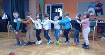 „Logorytmika”- dzieci z grupy V aktywnie uczestniczyły w grupowym zajęciu logorytmicznym z profilaktyką logopedyczną oraz…