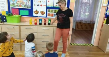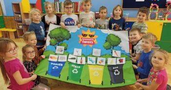 „Ekolodzy” – dzieci z grupy V uczyły się segregować odpady.