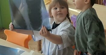 „Zabawa tematyczna „U lekarza”- dzieci z grupy II, bardzo aktywnie uczestniczyły w zabawie, dostały medale.