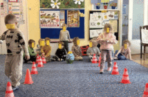 „Wielkanocne zabawy”- dzieci z grupy I, rozwijały swoją sprawność fizyczną, w czasie slalomu z jajkiem.…