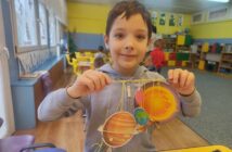 „Układ słoneczny”- dzieci z grupy V wykonywały przestrzenną pracę plastyczną- kształciły ekspresję twórczą, percepcję wzrokowo-ruchową.