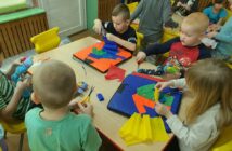 „Ubieramy misie”- zabawy sensoryczne – dzieci z grupy IV, kształciły motorykę oraz percepcje wzrokowo-ruchową tworząc garderobę…