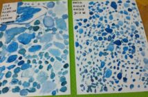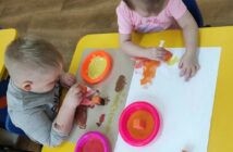 „Stemplowanki” – dzieci z grupy I wykonują kolorowe prace plastyczne.
